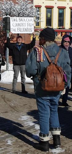 Christopher McLaughlin of Watertown was carrying a sign at the rally that read, “Take Back Our Country From the Billionaires.”