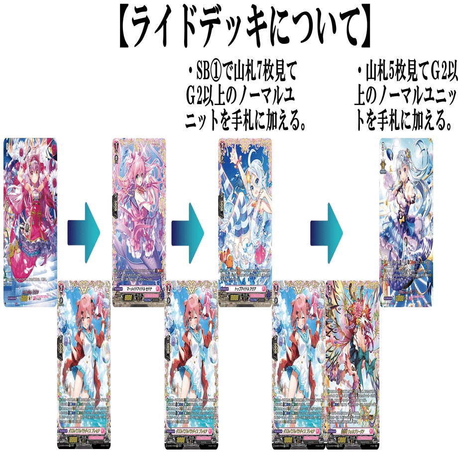 ・ライドフェイズに手札からEB③でダズルバブルをコストにする事で1枚ドロー出来ますので、セドナとアクアの効果使用後に1枚ドローします。