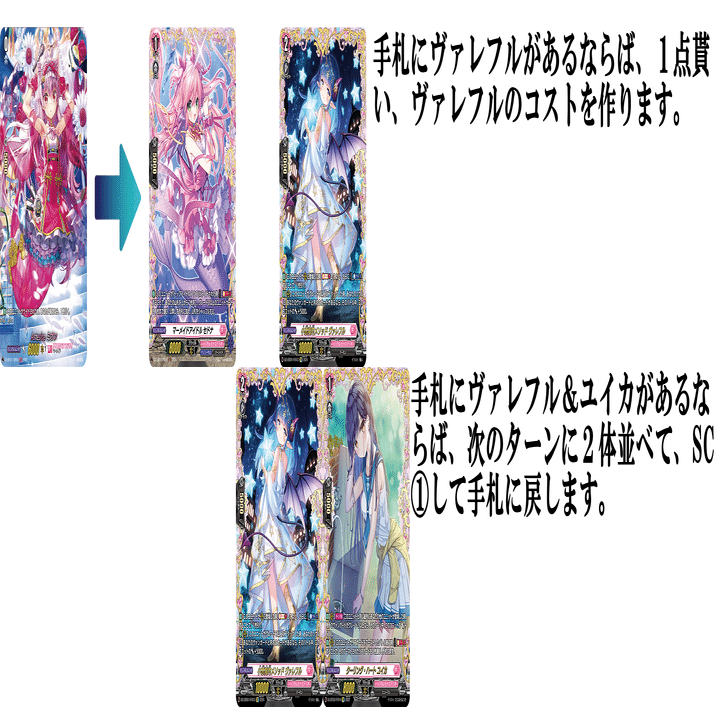 手札に戻す事は出来ないがG2ターンでもCB①でソウル増やして1枚引く事が出来るので、疑似ヴァレフルとして手札事故の際には選択肢に入ります。