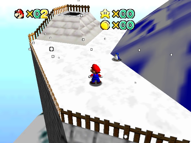 - The "Bottom of the Mountain" star in the Shoshinkai version of Snow Slide shares the same star ID as the "Return a Baby Penguin to the Mother Penguin" star within the same level. Therefore, collecting the star from one of them is the same as collecting the star from the other and thus you will not get a duplicate star. Both stars also share the same star ID as the "Return a Baby Penguin to the Mother Penguin" star in Cool, Cool Mountain (beta). However, the star in Cool, Cool Mountain (beta) is out of bounds and therefore can not be collected.