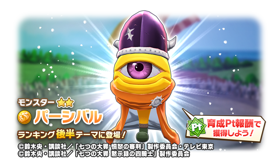他にも、育成プレイで獲得できる「育成PtⅠ」が一定に達するごとに「コラボフェス★3円盤石」や「七つの大罪コラボフェスチケット」、「パーシバル」のモンスターハートなど豪華報酬を獲得できます。