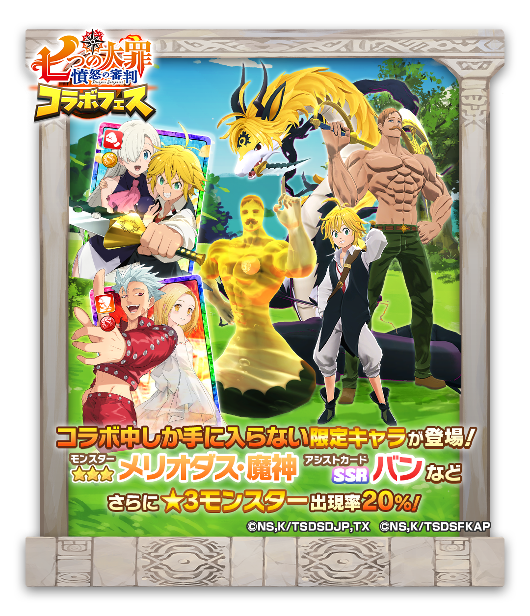 『七つの大罪』コラボ限定のモンスターとアシストカードがピックアップされるガチャイベント「七つの大罪コラボフェス」を開催します!