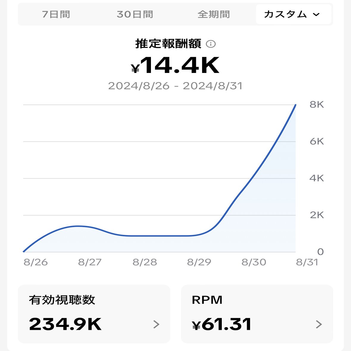 ※26日から収益化開始したため6日分の収益