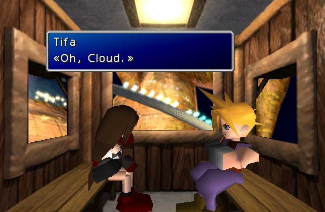 After taking the opportunity to catch the newer members of the party up on the events that led to the pursuit of Sephiroth, Cloud is in his room, lost in thought. Depending on the date mechanics results, Aeris, Tifa, Yuffie, or Barret will knock on his door and offer to go out. The date coincides with a special event the Gold Saucer is holding where all the attractions are free.