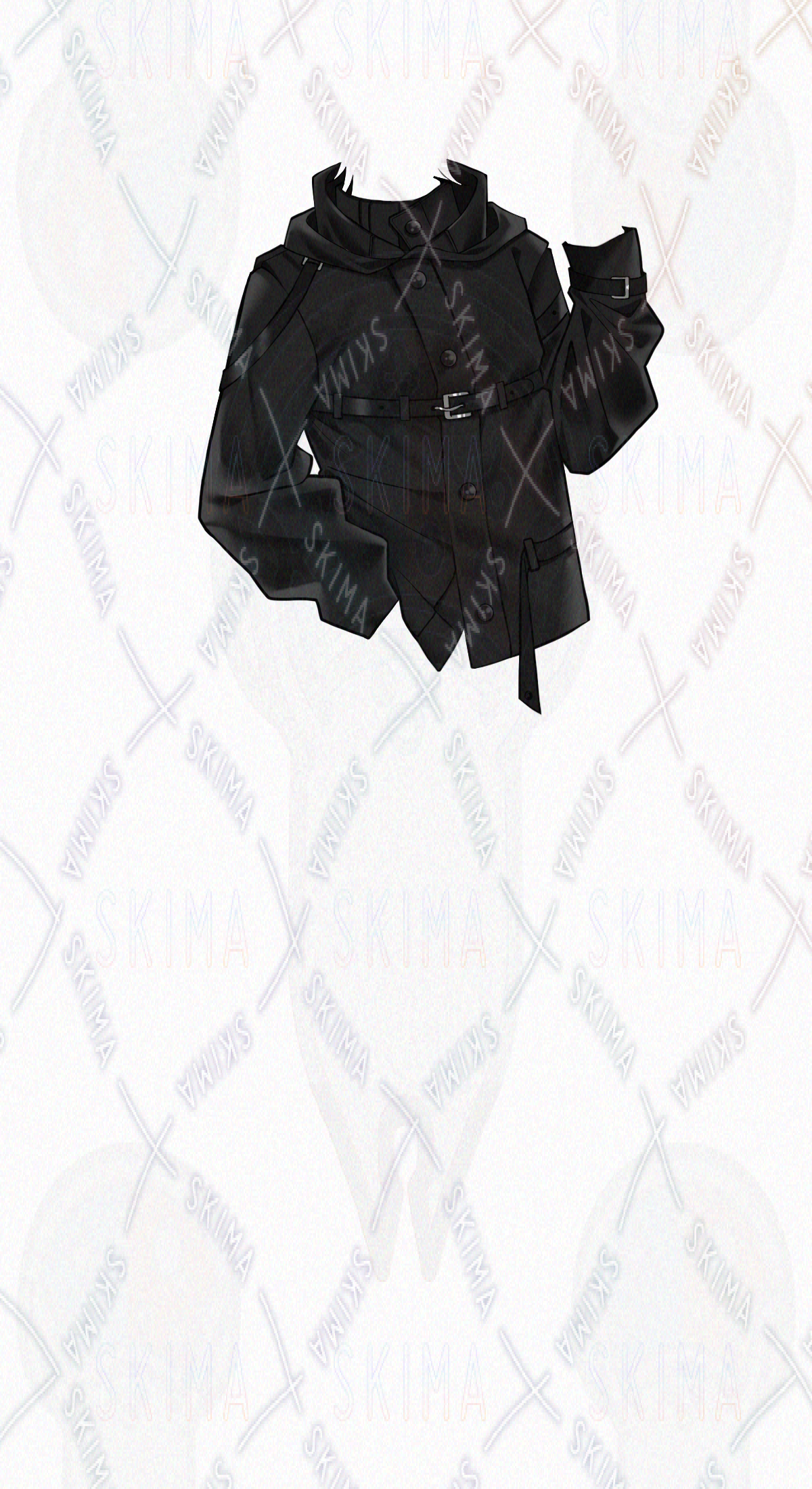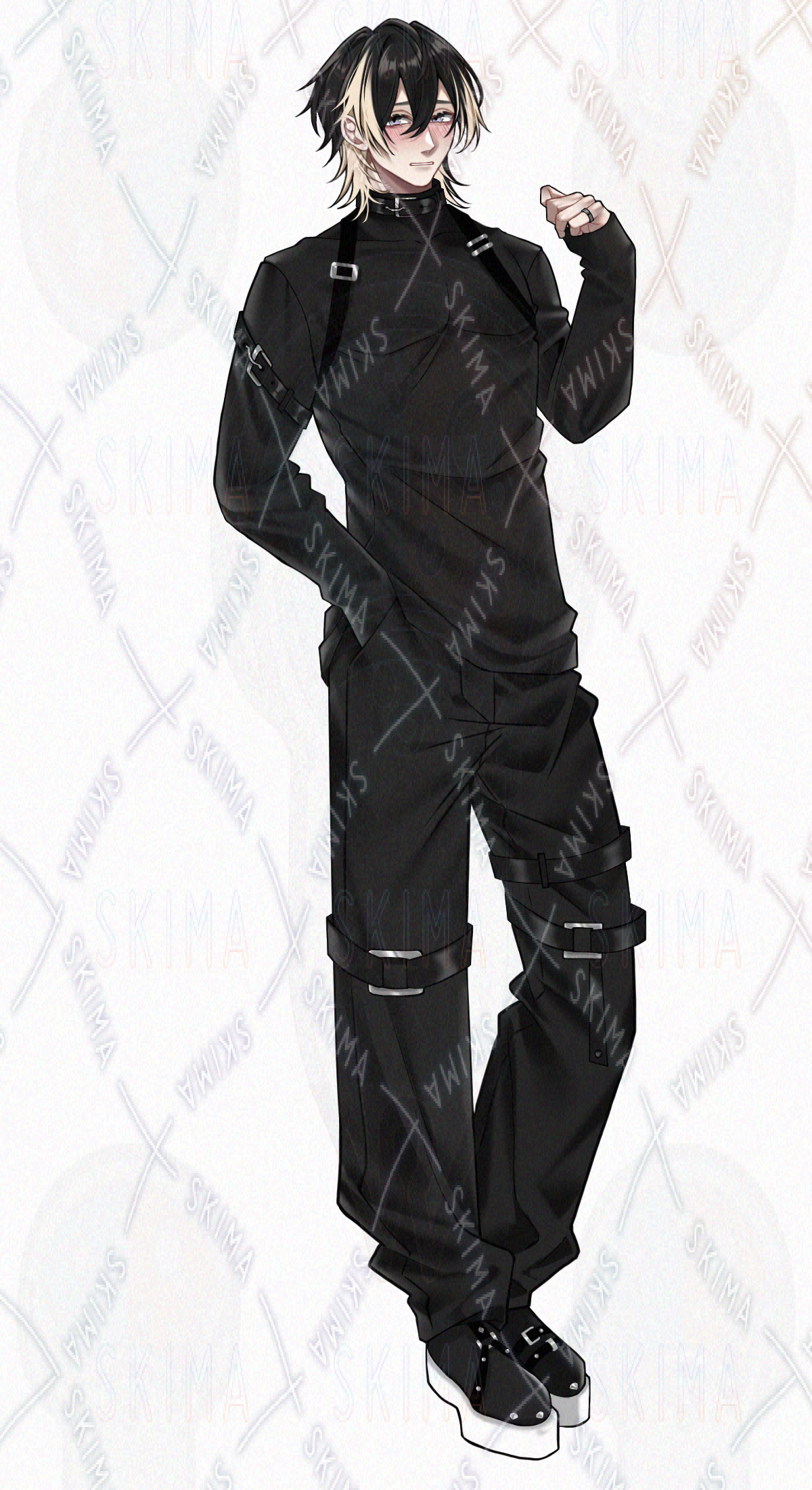 男性/男の子/男性キャラクター/立ち絵/黒髪/TRPG/全身/短髪/ツートン/金メッシュ/タクティカル風/ウルフカット/ハーネス/筋肉質