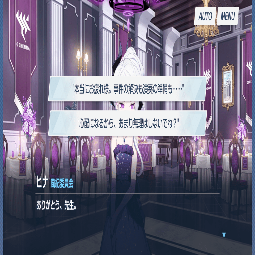 万魔殿の文句垂れるまではアコちゃんでも出来るが、そこから先は先生にしかできないのである。ヒナは文武両道の生徒かもしれない。でもその不器用さだけは赤点モノである。そこの所をゆめゆめ忘れることなく、ヒナと向き合っていきたい。そう思ったゲヘナイベであった(執筆時点でまだストーリー半分までしか読んでないんですけど )