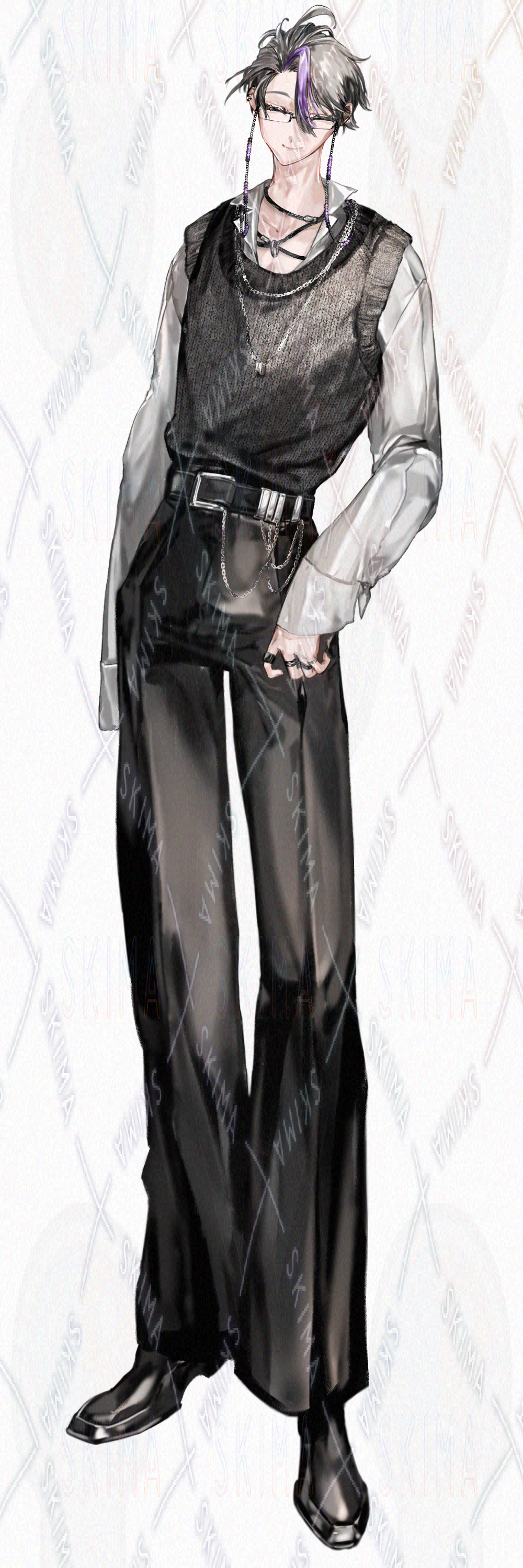 銀髪眼鏡の青年【表情10種】
