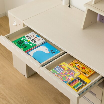 シンプルなデザインで、お子さまが成長しても長くお使いいただけるくみあわせデスクです。