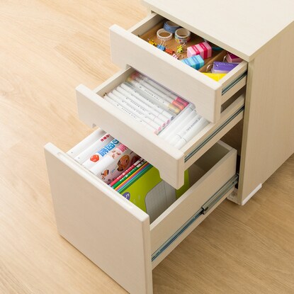 ワゴンの引出し最下段フルスライドレールで奥の物も取り出しやすくなっています。
