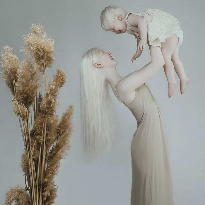 「娘が誕生後、母に『この子の髪はブロンドね』と言われたのですが、私は『ブロンドよりももっと暗い色に見えるわ』と伝えました。そしてまつ毛に目をやると片方はブロンドで、もう片方はブルネットであることに気づいたのです。」