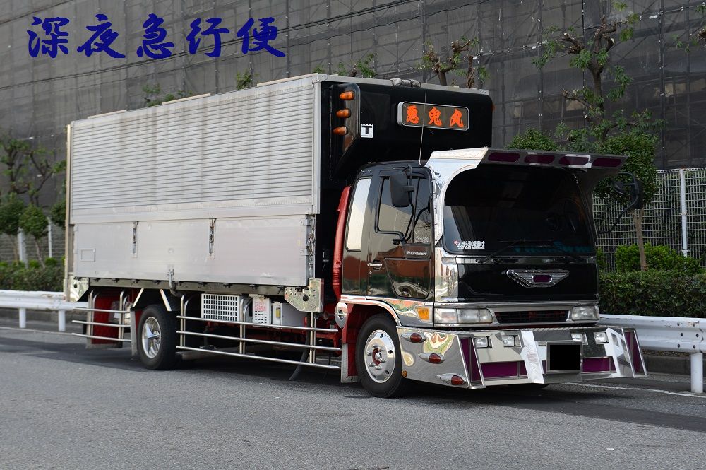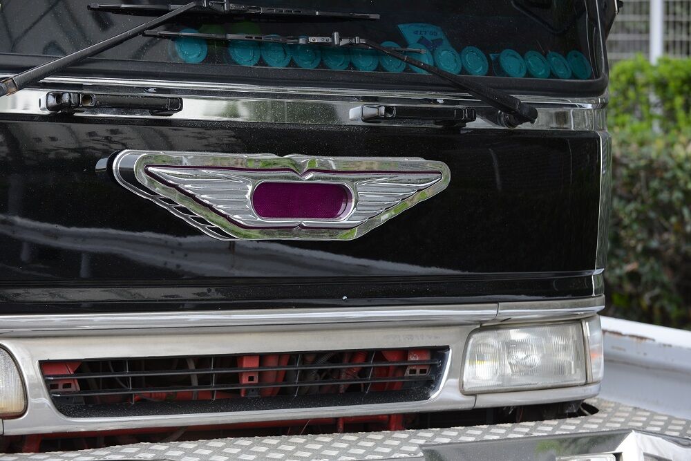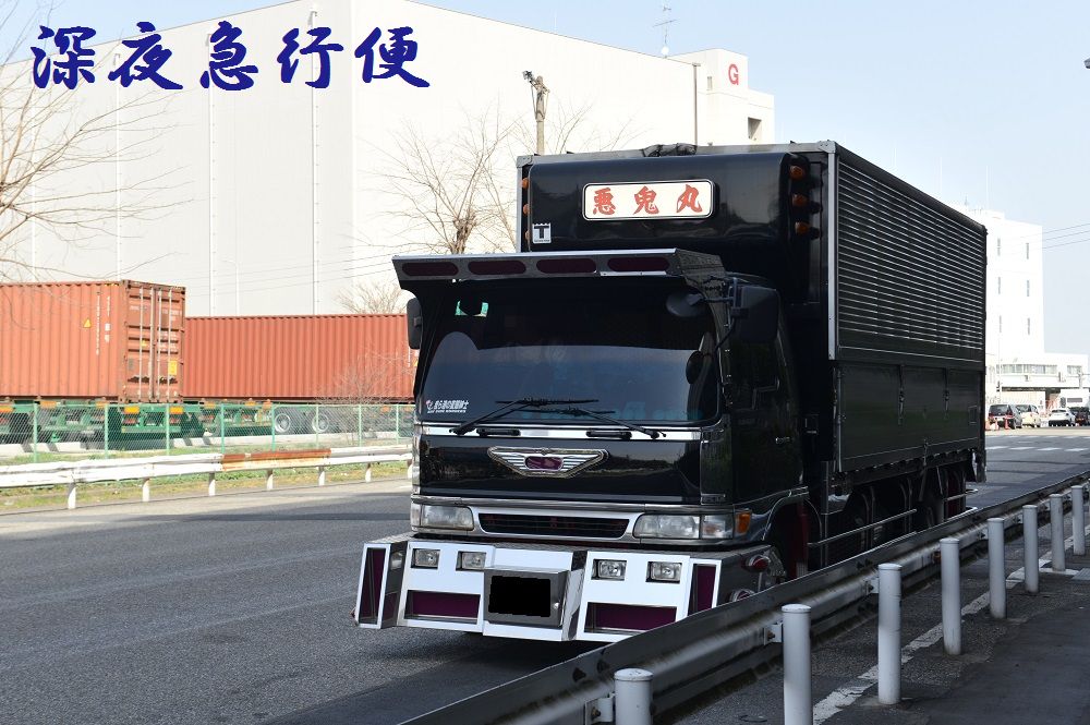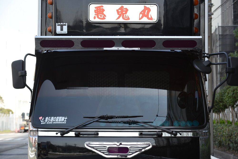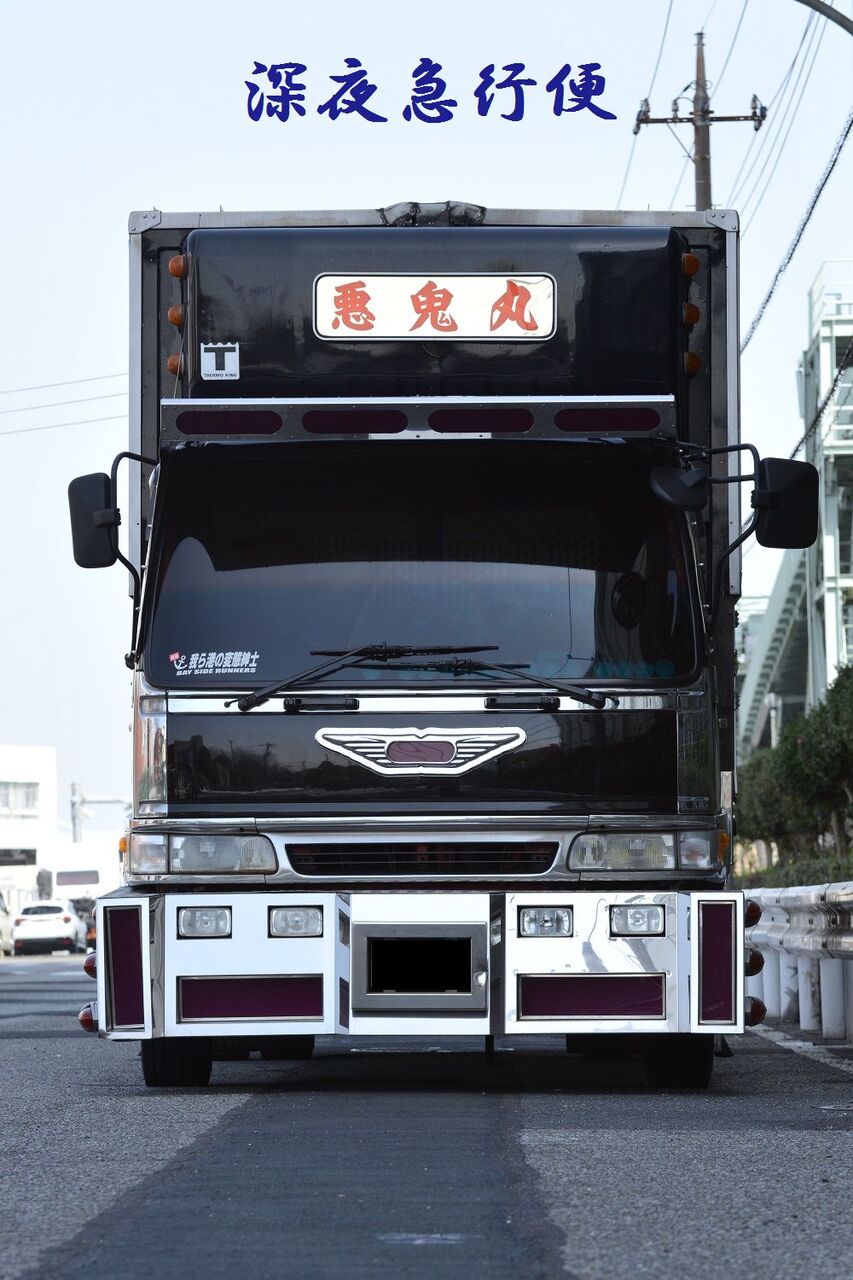 悪鬼丸 2023年04月09日 17:00 本日は、悪鬼丸さんです。厳つい風貌を漂わせて停泊中だった此方の車輛さん。パープルカラーの行灯がアクセントで効き迫力満点のラッセルバンパーは見応え満点でした。硝子はボカシとスモークが効いてワルそうな印象が只ならぬ雰囲気を放っています。ウイングボディーはネタ上げも相まって怒涛の気迫に目を奪われますね。丸パイプ3段組みのサイドバンパーはオーバーハングまで続き重低音を奏でるマフラーサウンドも痺れさせます。リアペイントも受け継がれ今でも健在でした。リアになります。※撮影許可済みです。 「中型車」カテゴリの最新記事 ユーア重機 琢磨丸急行 オカヤン ニックなし ユーア重機 < 前の記事次の記事 > コメント コメントフォーム 名前 コメント 記事の評価 リセット リセット 顔 星 情報を記憶 コメントを投稿する
