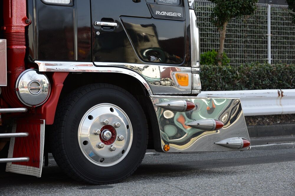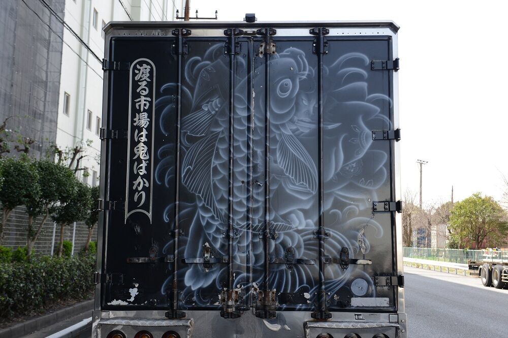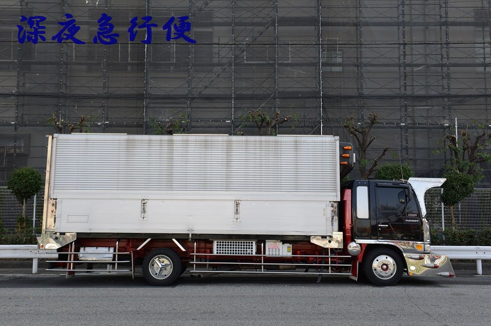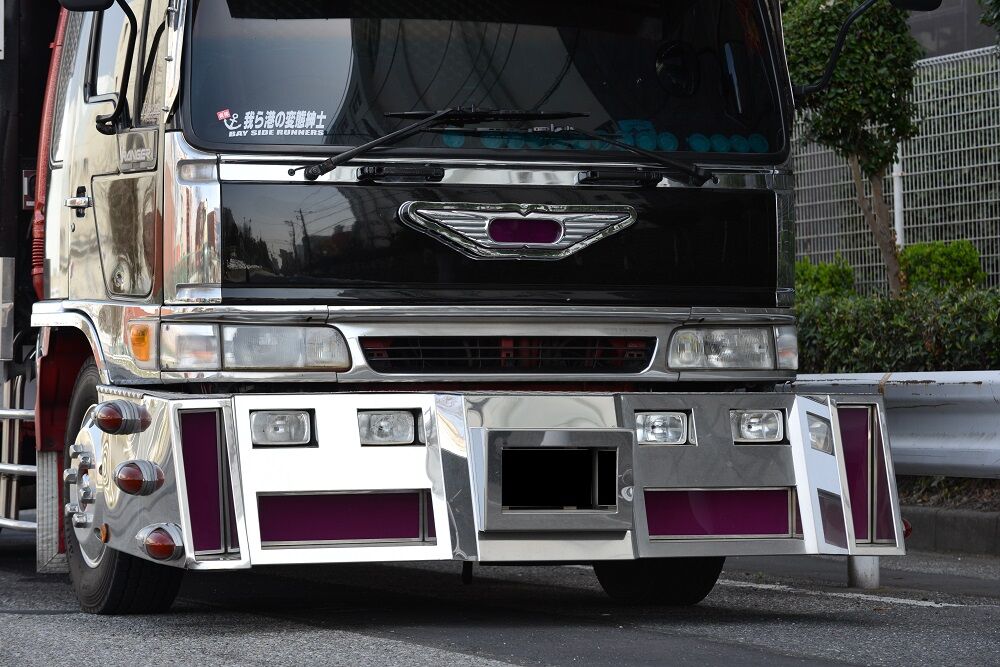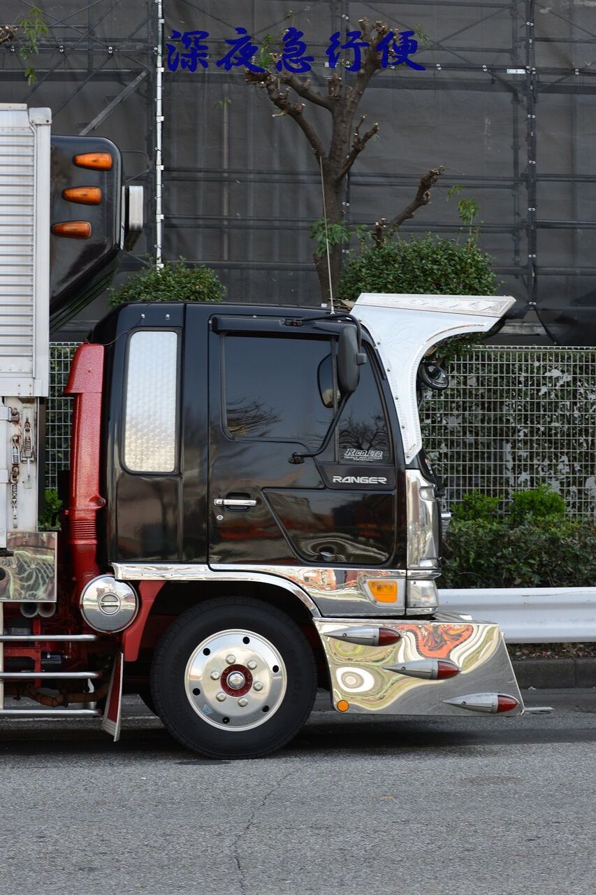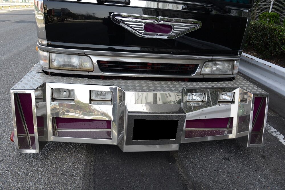 悪鬼丸 2023年04月09日 17:00 本日は、悪鬼丸さんです。厳つい風貌を漂わせて停泊中だった此方の車輛さん。パープルカラーの行灯がアクセントで効き迫力満点のラッセルバンパーは見応え満点でした。硝子はボカシとスモークが効いてワルそうな印象が只ならぬ雰囲気を放っています。ウイングボディーはネタ上げも相まって怒涛の気迫に目を奪われますね。丸パイプ3段組みのサイドバンパーはオーバーハングまで続き重低音を奏でるマフラーサウンドも痺れさせます。リアペイントも受け継がれ今でも健在でした。リアになります。※撮影許可済みです。 「中型車」カテゴリの最新記事 ユーア重機 琢磨丸急行 オカヤン ニックなし ユーア重機 < 前の記事次の記事 > コメント コメントフォーム 名前 コメント 記事の評価 リセット リセット 顔 星 情報を記憶 コメントを投稿する