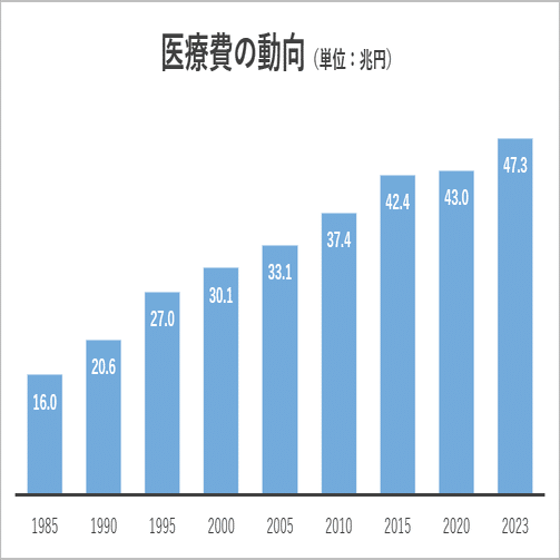 令和5年度の概算医療費は47兆円に達しているそうです。医療費とは、平たく言うと国民と保険組合から病院へ支払われた金額の総額です。