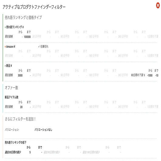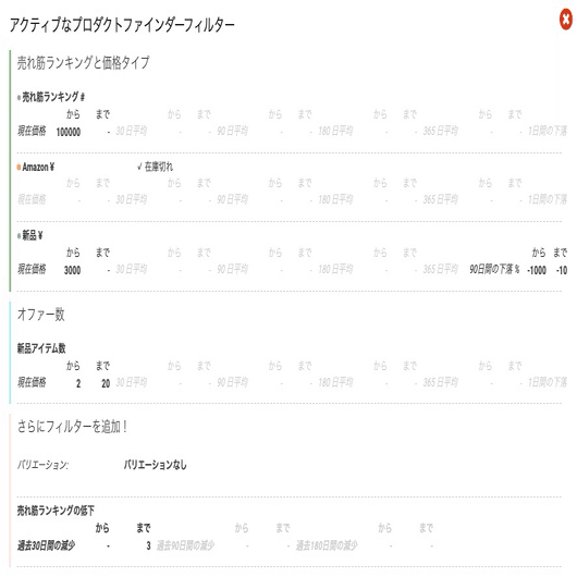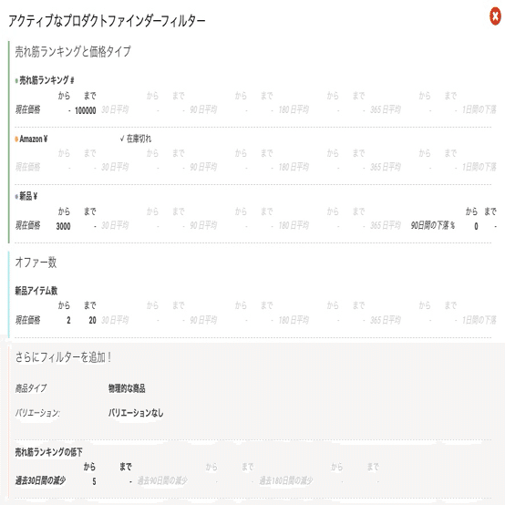 Product Finderを極めればこれらの条件からさらに派生させて様々なリサーチをすることも可能になるので、ぜひ過去のポストもブクマして何度も見返すようにしてください。