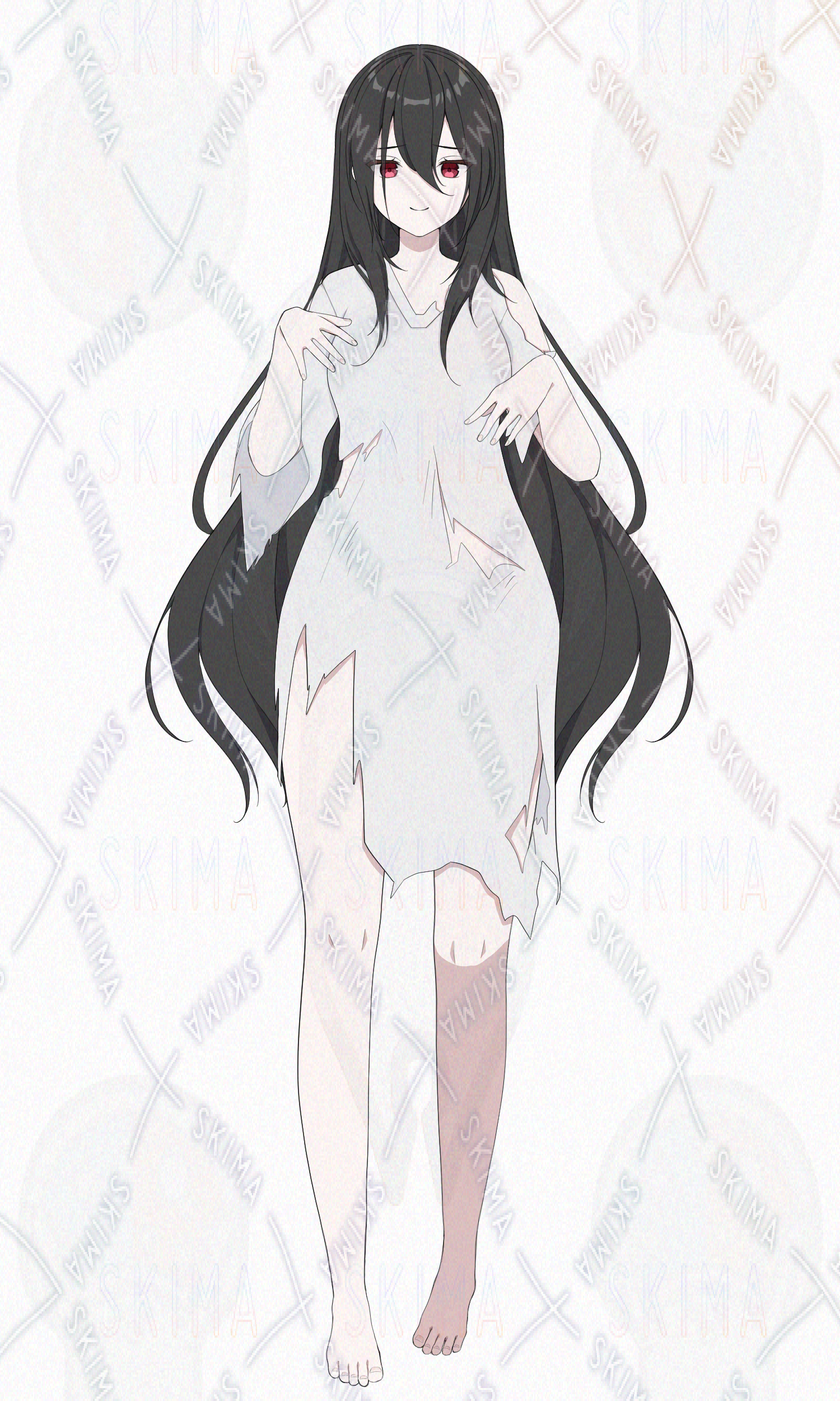 検索用   お化け 白ワンピ 赤目 ワンピース 裸足 黒髪 ロング