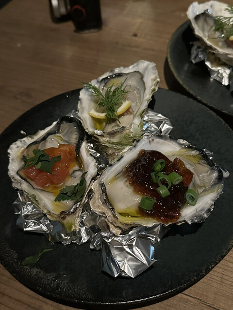 牡蠣を蒸し、焼き、生で食べられトッピングの味変も大変美味です。