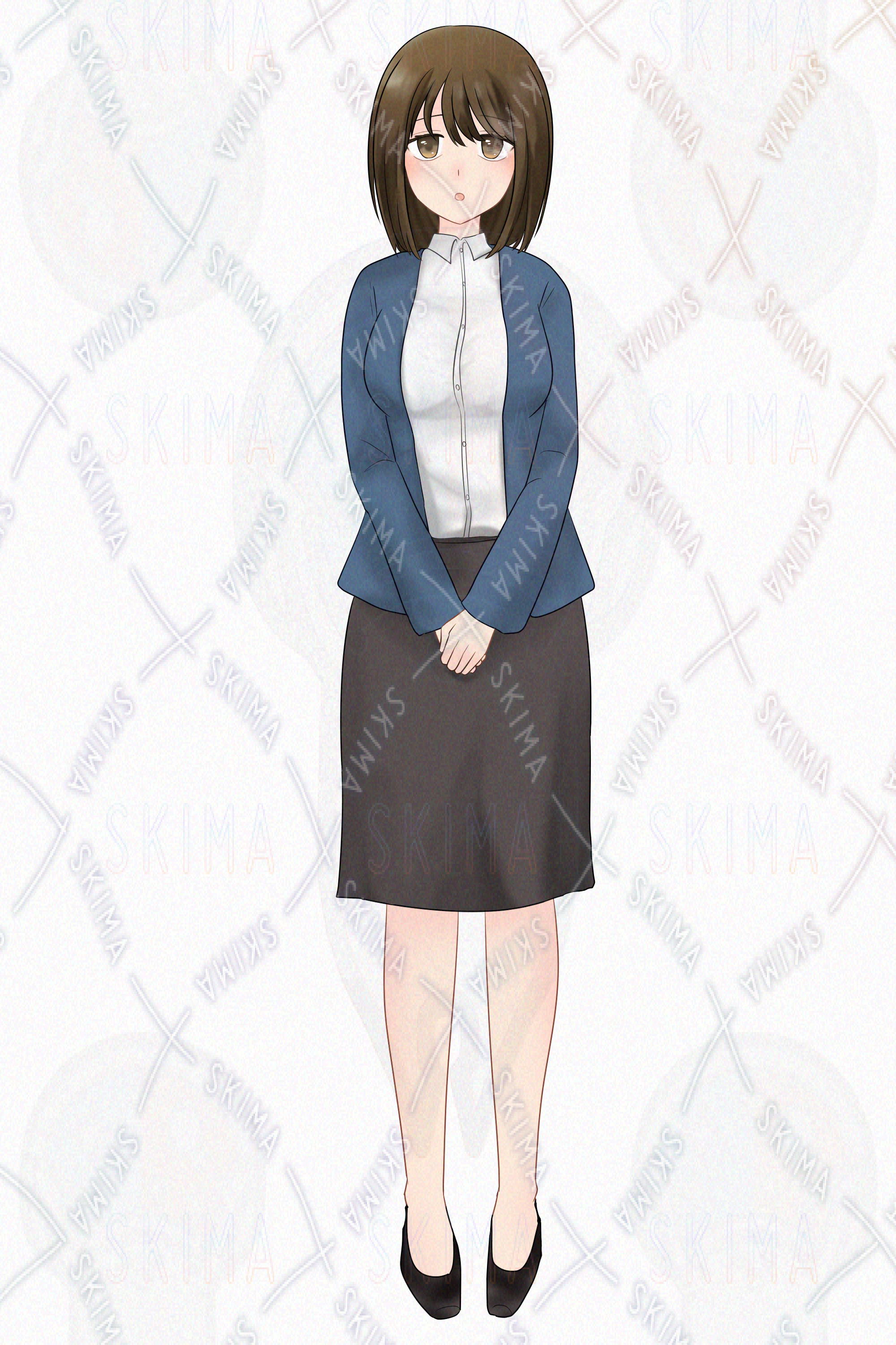 (イメージ…女性・女の子・シャイ・内気・事務員・会社員・OL・先生・ボブ・垂れ目)