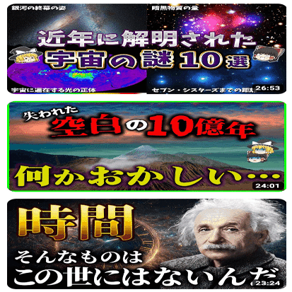 例えば【宇宙のゆっくり解説がいいらしい】で検索すると、