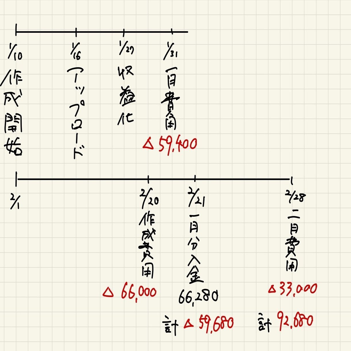 2月頭繰越 -92,400円