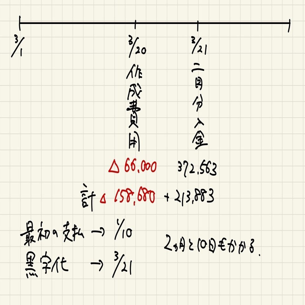 2月の収益は37万だったので、ようやくここで黒字に転じられます。