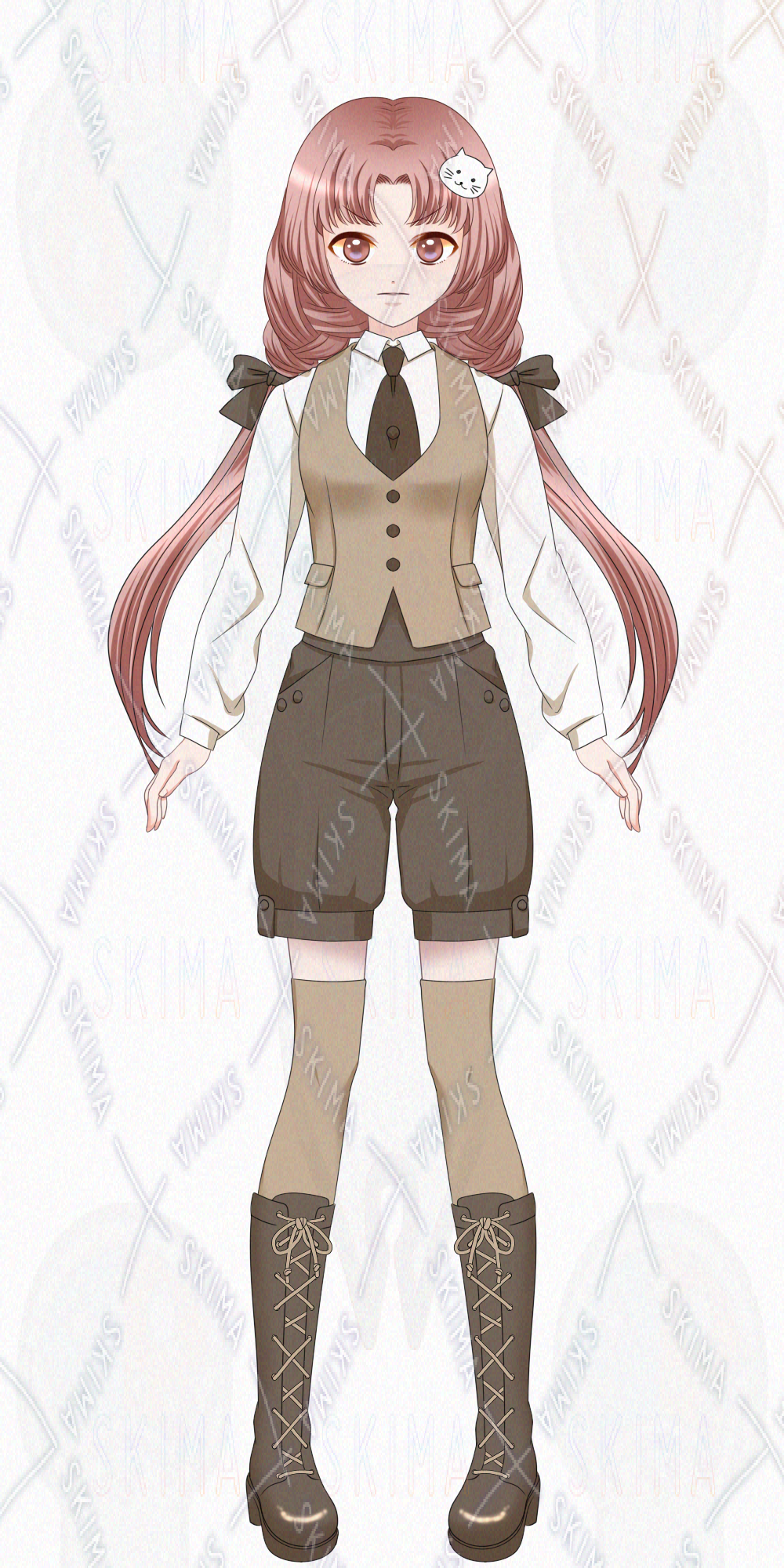 ベスト/ジレ/ニーソ/ブーツ/長髪/ツインテール/三つ編み/垂れ目