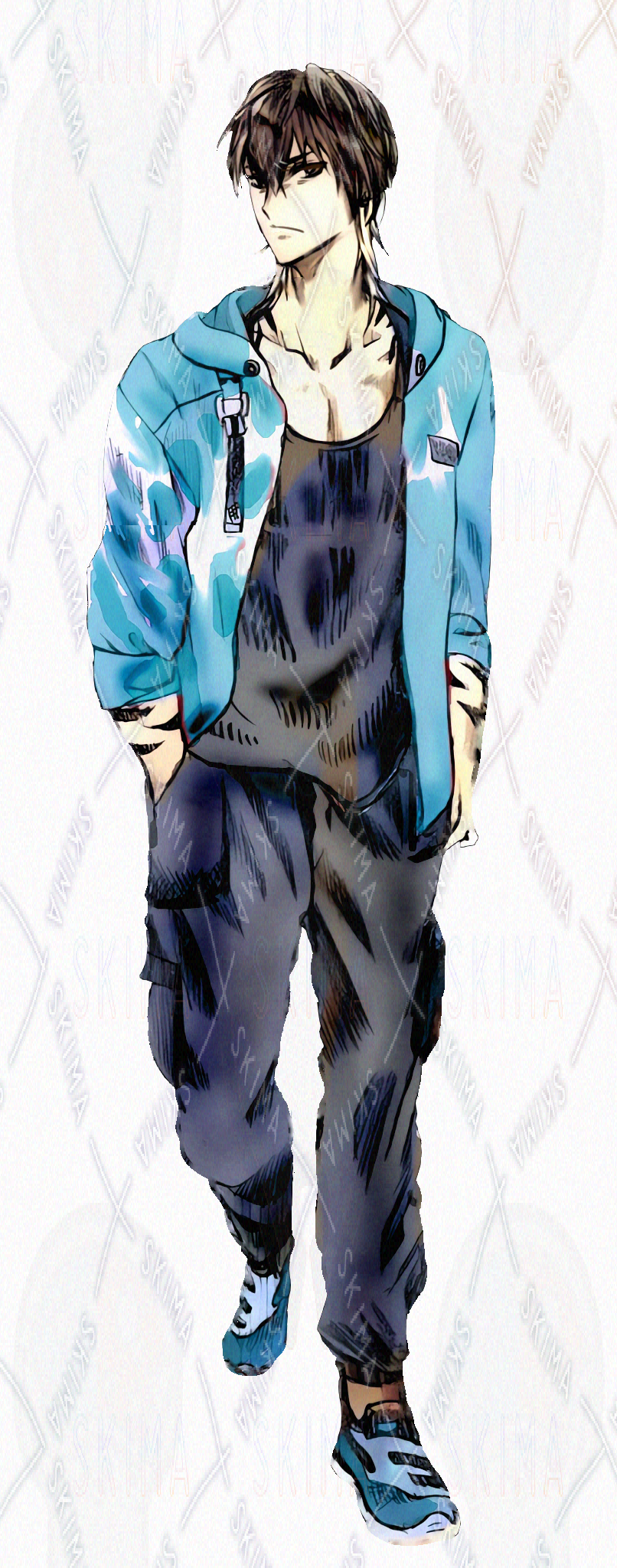 【下絵付き】立ち絵差分5種 350dpi ウルフヘア 男性