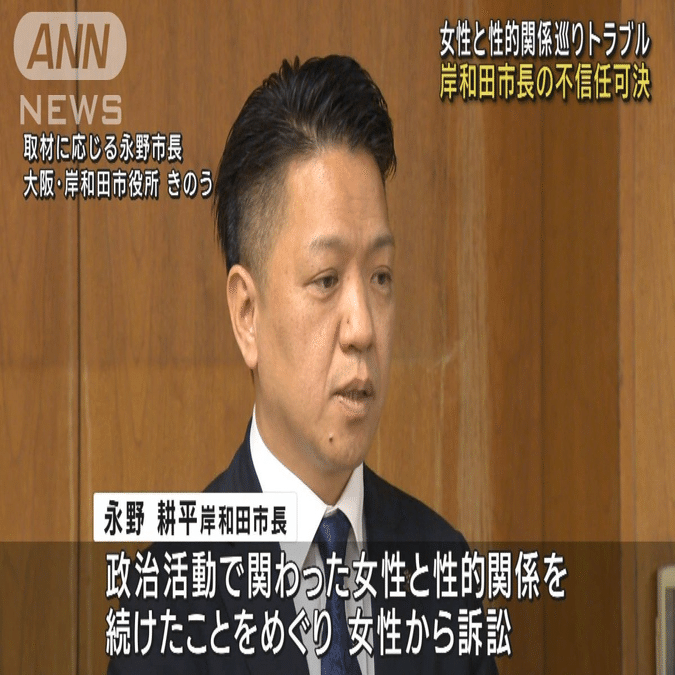 【維新の不祥事】😡レイ◉マン・岸和田市の永野耕平市長。女性への不同意性暴行の結果、不信任決議!。永野変態市長は議会を解散。選挙へ。永野市長は「大義はない」と辞職・失職せず。これぞ、維新スピリッツ🤬