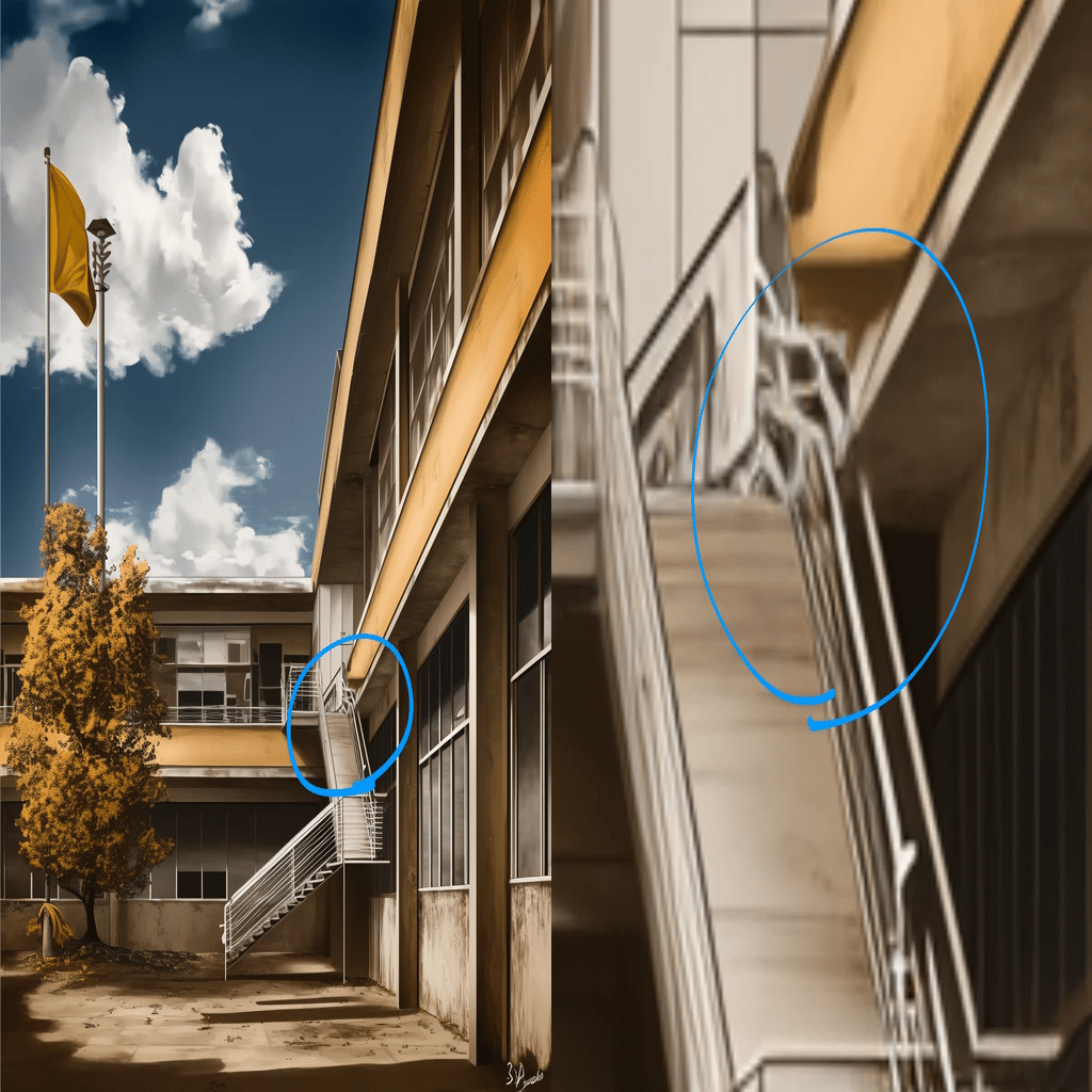 明らかにAIらしいミスに関しては、なぞらなきゃいいだけよ。いちいちグチャググチャの手すりまで再現しない。それはそう。
