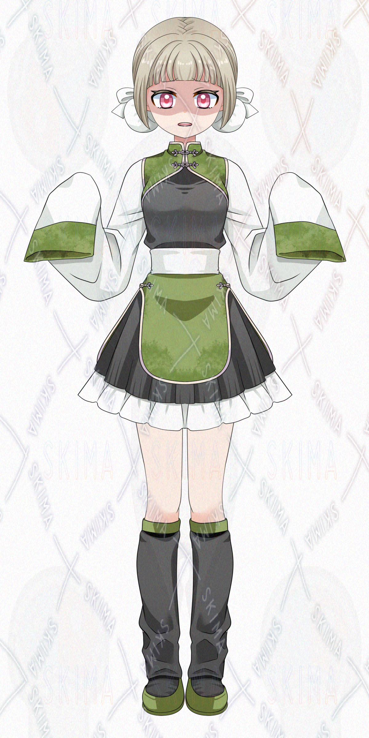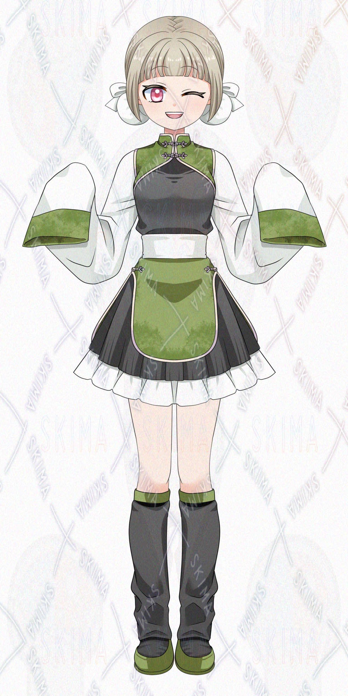 茶髪/チャイナ/シニヨン/お団子/スカート