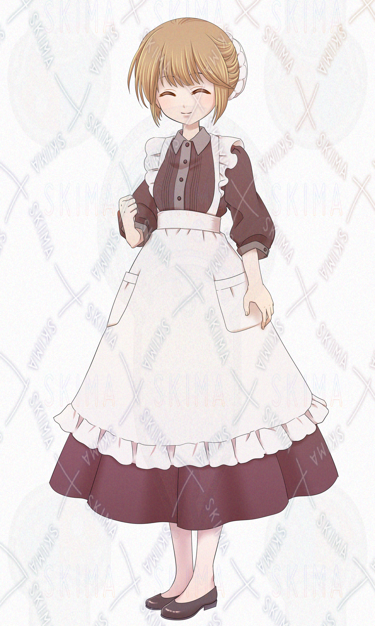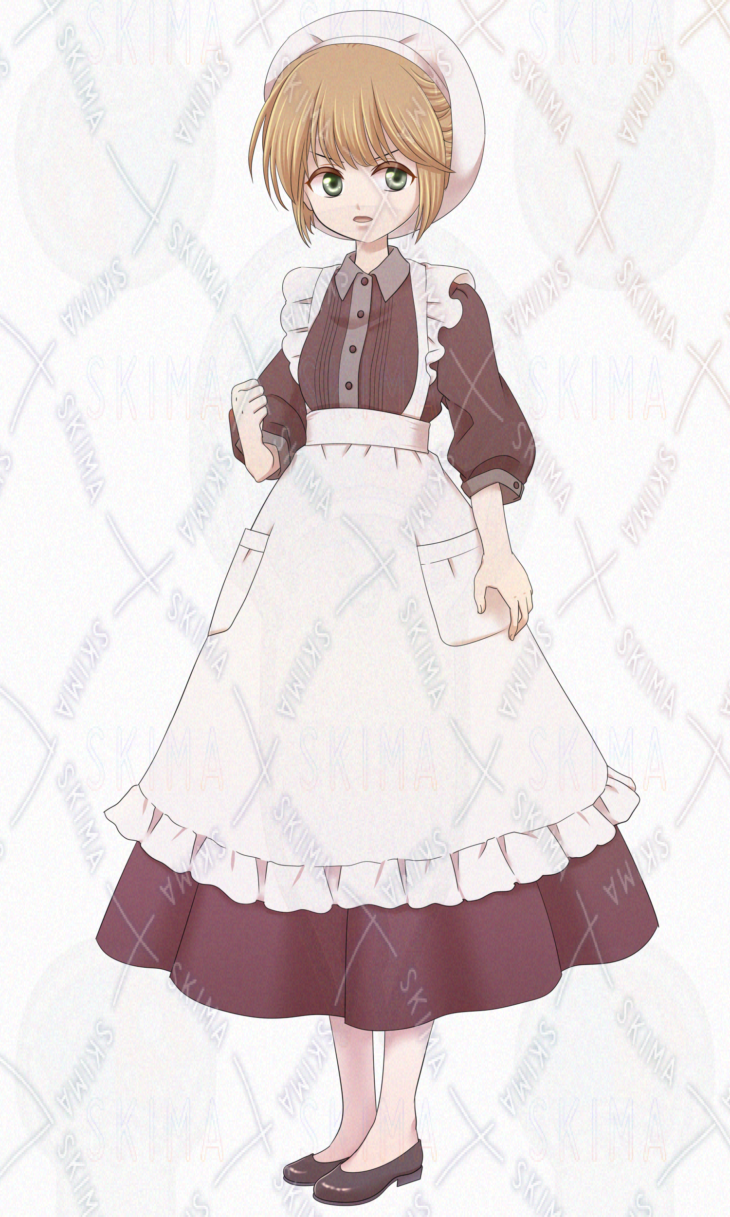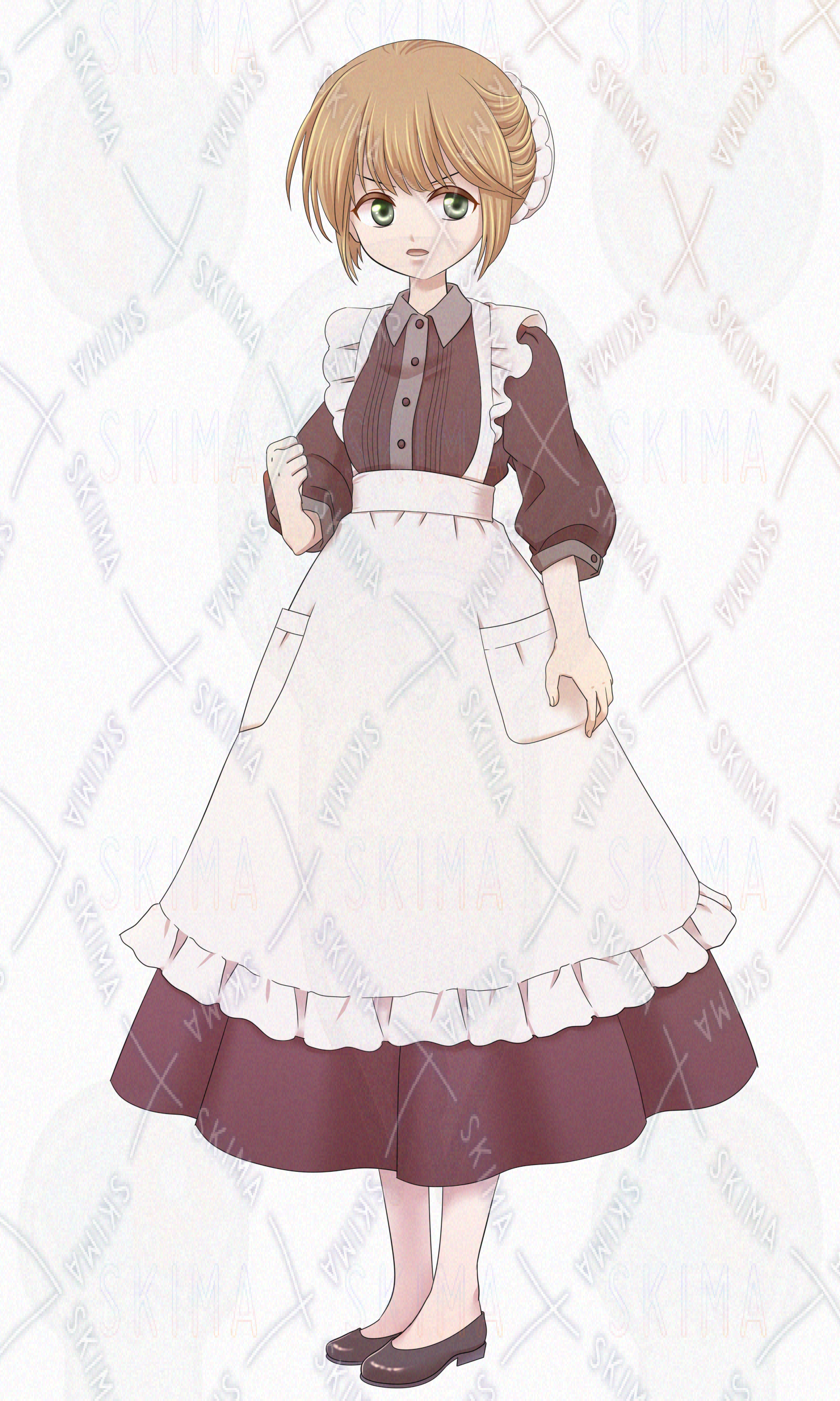 エプロン/ロングドレス/スカート/シニヨン/女の子