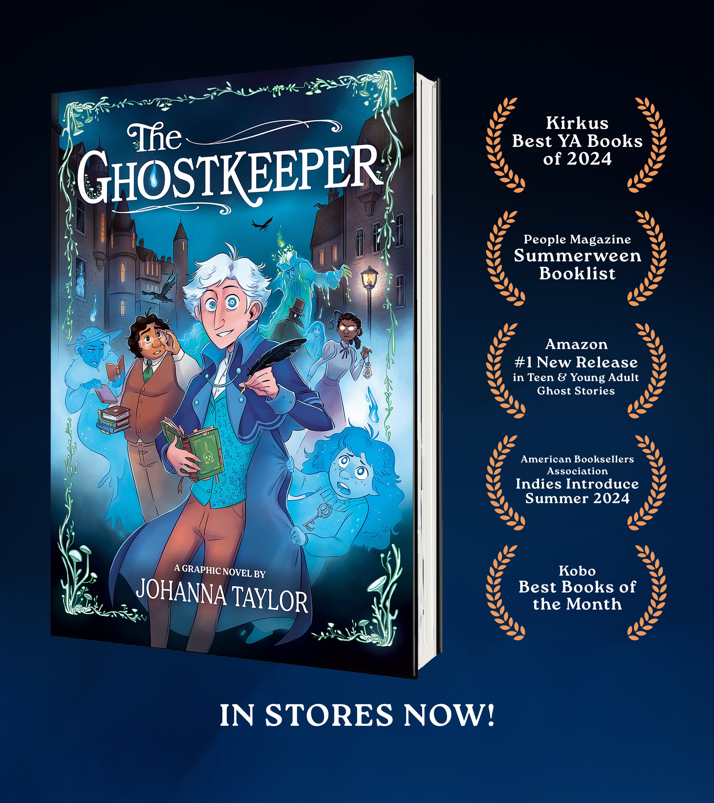 THE GHOSTKEEPER is author-illustrator Johanna Taylor’s debut YA graphic novel, sold at auction to Penguin’s Putnam imprint, and edited by Chris Hernandez. The story takes place in a Victorian fantasy world loosely based on late-1800s Scotland, and follows Dorian Leith, a young therapist for ghosts who teaches them how to cope with grief, loss, and regret, and move on to the next life, all while navigating his own mental health struggles, burnout, and codependent relationships. THE GHOSTKEEPER is a balanced blend of horror, hope, humor, and Celtic folklore. IN STORES NOW!