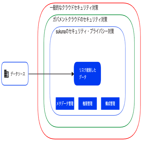 また、データは資産ですので、資産活用によるリターンと同時に、資産を盗まれたり流出するリスクが存在します。特に政府情報システムは様々な個人情報を保有していますので、それらシステムと連携するsukunaは常にリスクと隣合わせになっています。