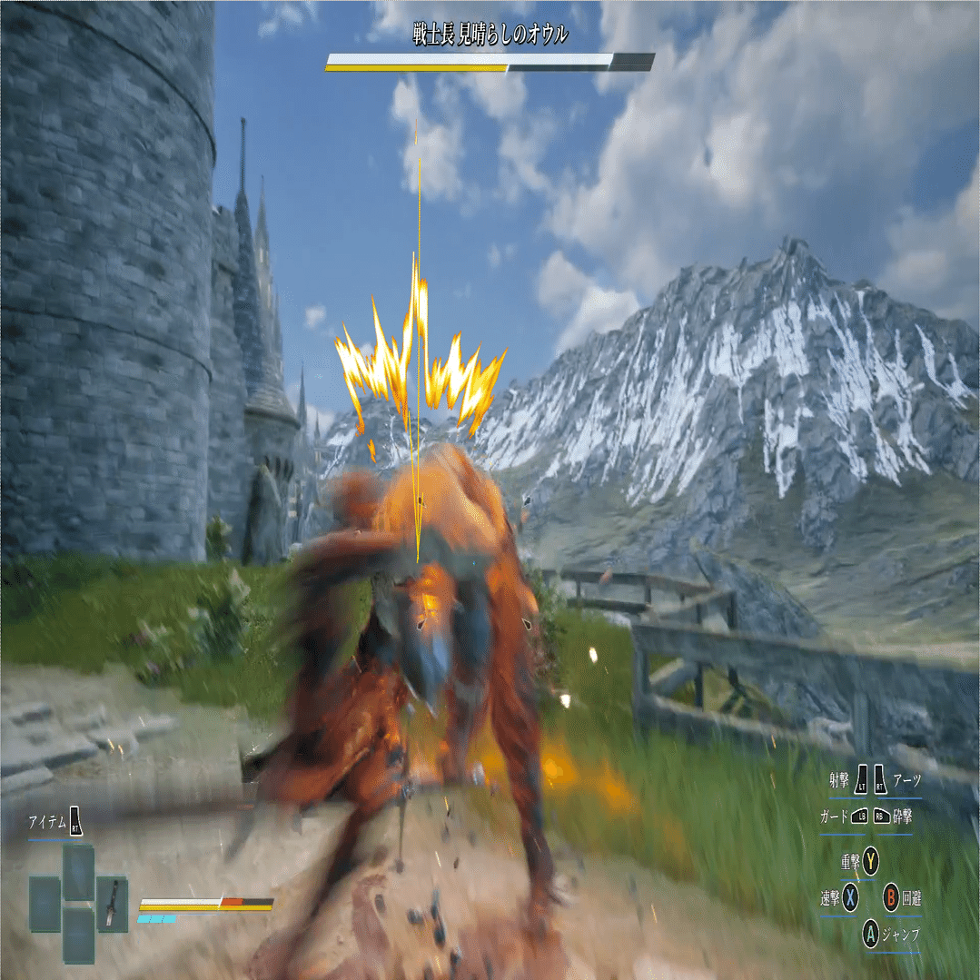 「攻撃したら、相手が派手なやられモーションを取る」というのは素直に楽しい。3Dアクションはだいたいやられモーションが地味だったりなかったりする。モンハンもダクソも。派手にズガンと吹っ飛んでよろけて見せてくれるのは爽快感ある。