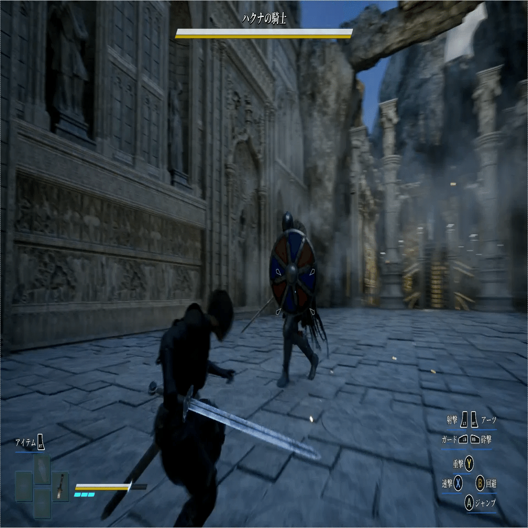 PCアクションゲーにしては大きめの入力遅延がある。移動も攻撃も全部がワンテンポ遅い。カメラが早いし慣性が乗るので制御しづらい。ダッシュが前にしかできない。カメラの旋回にキャラがついてきて見た目が変。攻撃方向がカメラ依存で前方にしか出せない。などなど動かしてるだけでじわじわストレスが溜まる。ダクソも操作性悪いけどそれよりさらに悪い。