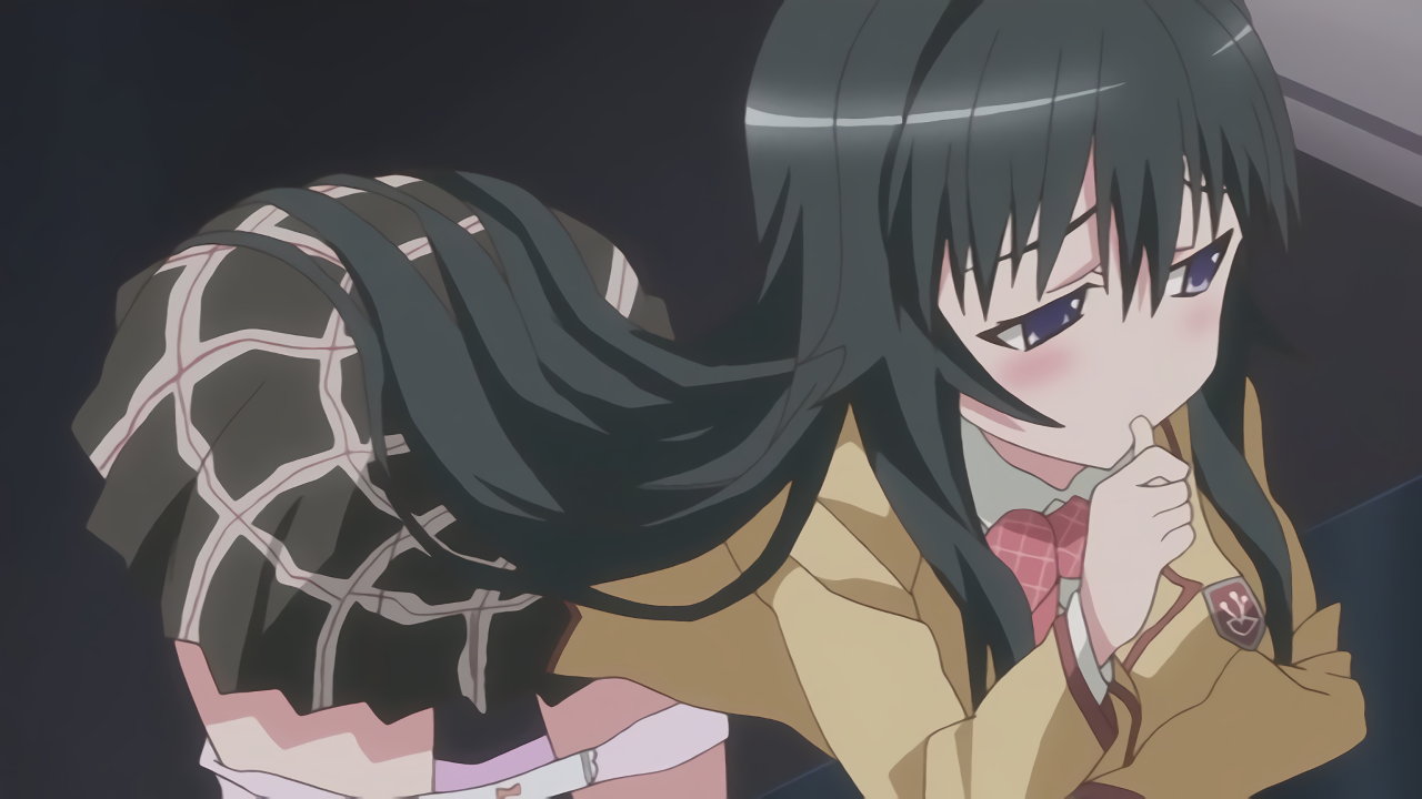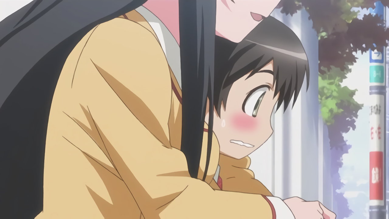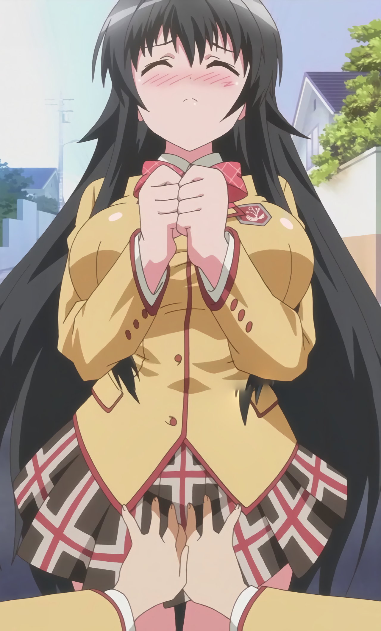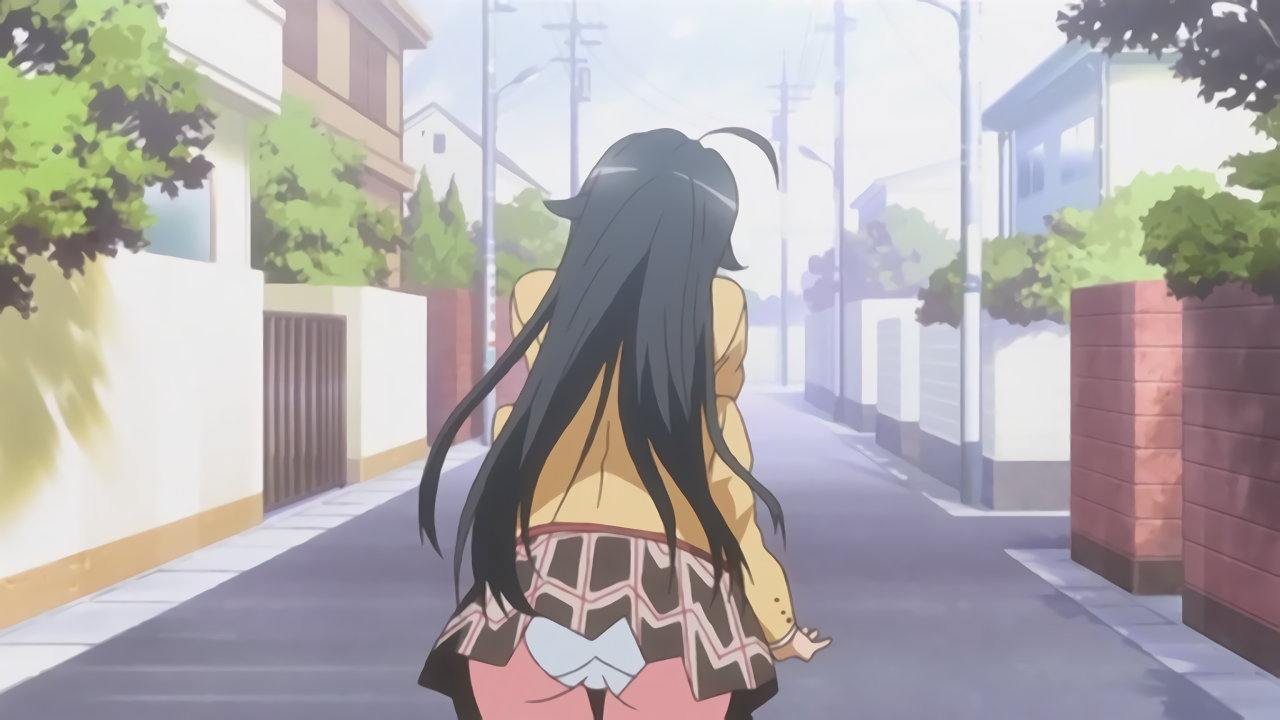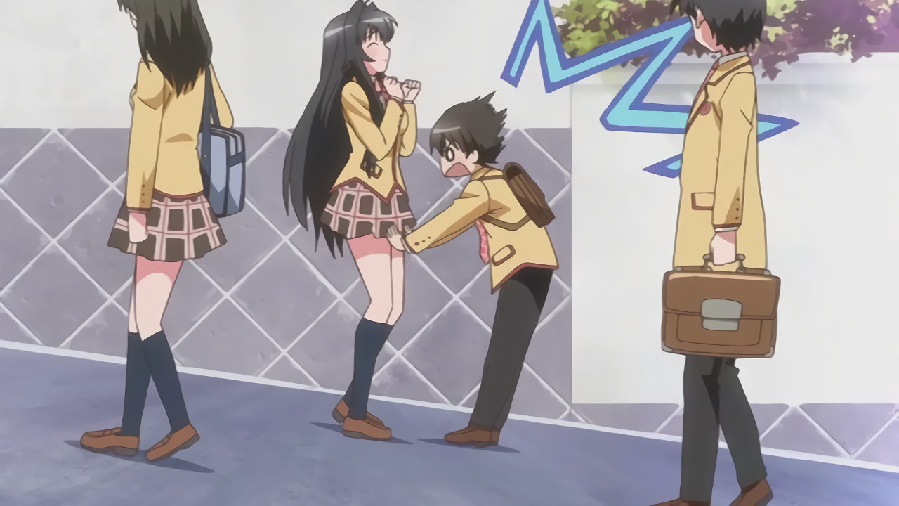 通学路の道端で、耕太に発情するちずる。結界により、他の人間からは不可視状態となっている。