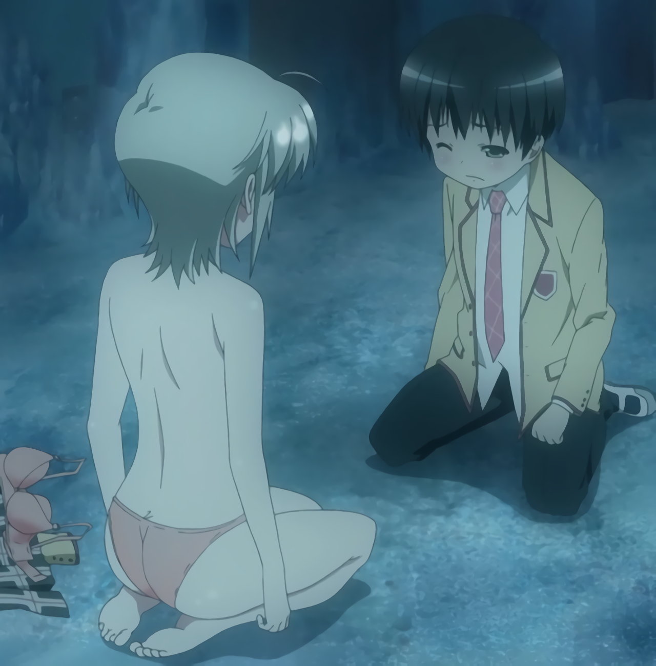 脱衣してパンツ一丁となり、耕太を押し倒すちずる。しかしその直後、結果が解除され、ちずるの痴女姿が衆目に曝されてしまう。