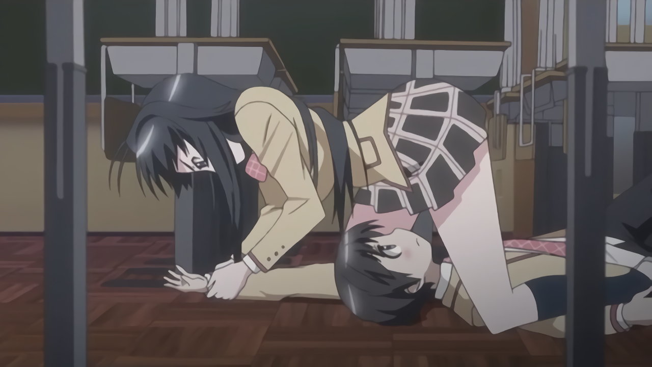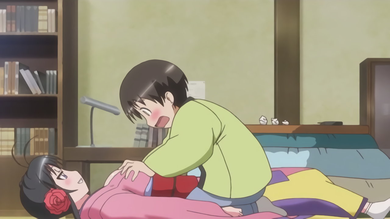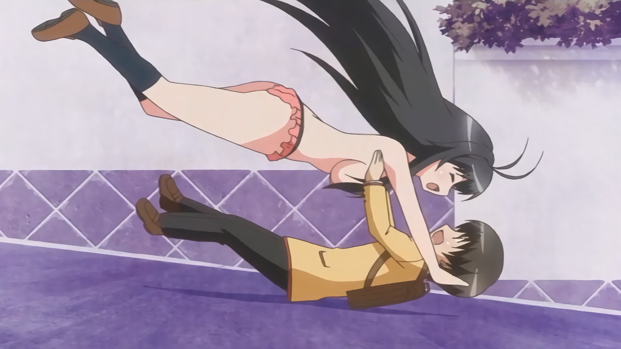 パンチラしながら耕太を押し倒す望。