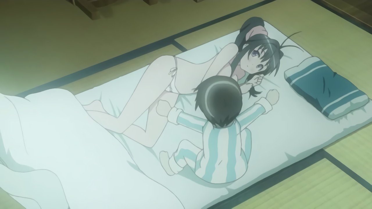 起床直後、布団に潜り込んでいたちずるを発見する耕太。