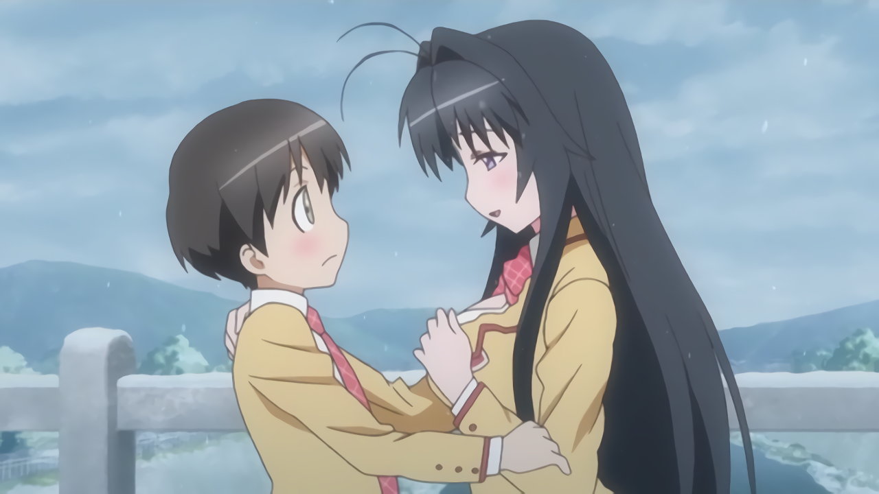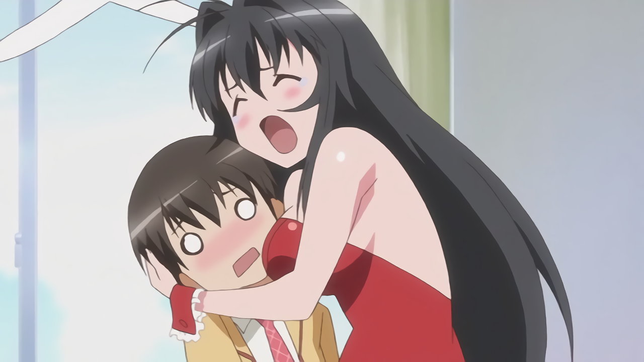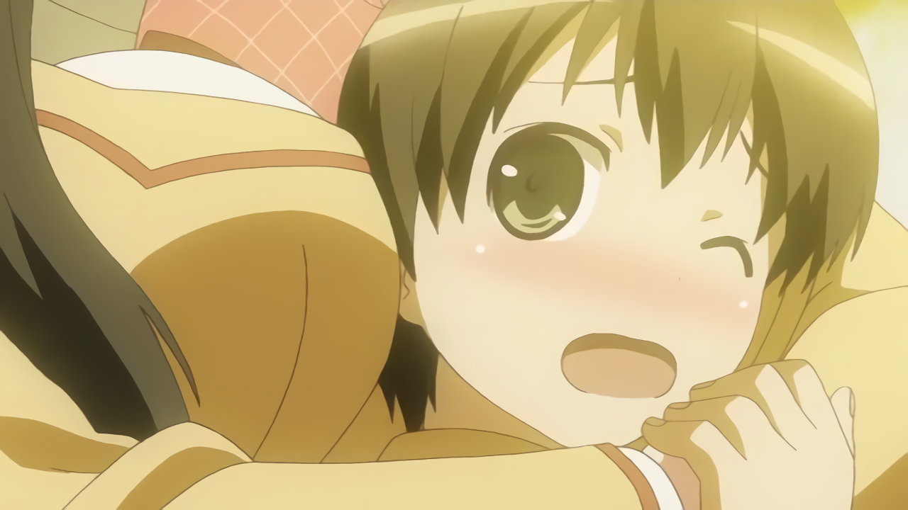 ちずるに抱きつかれ、巨乳に顔が埋もれる耕太。