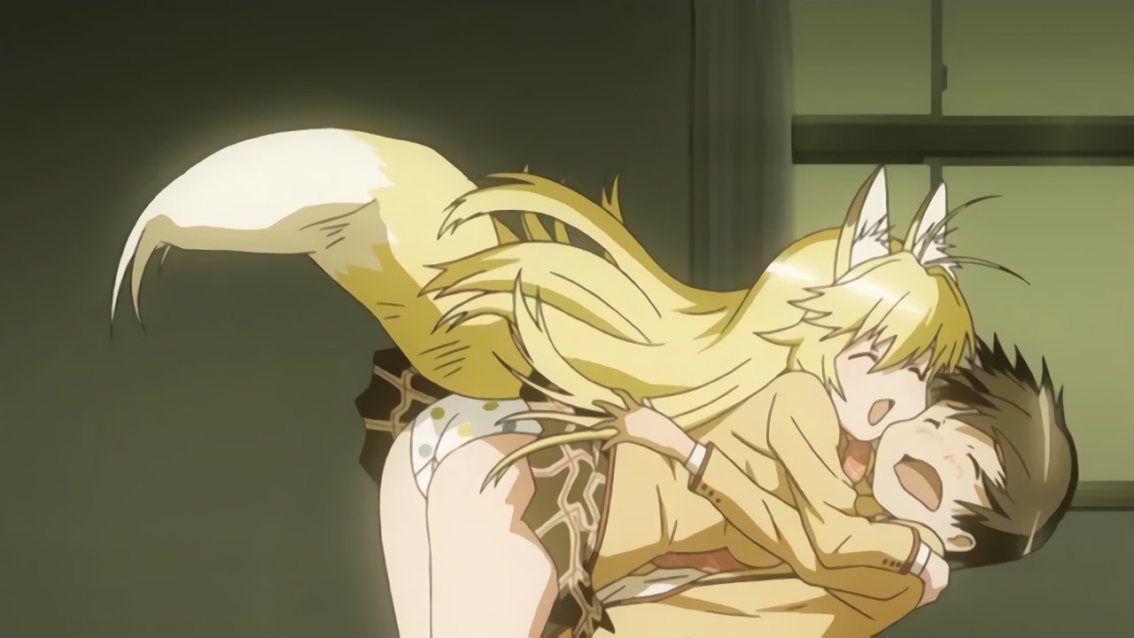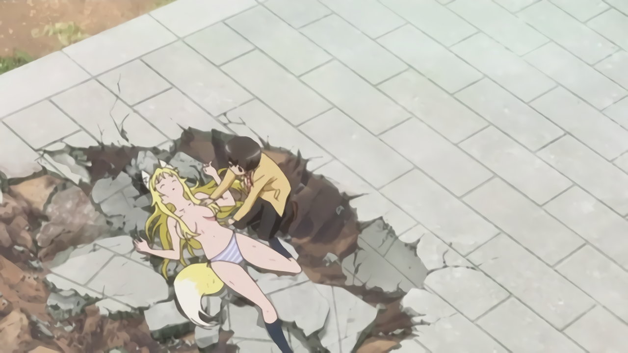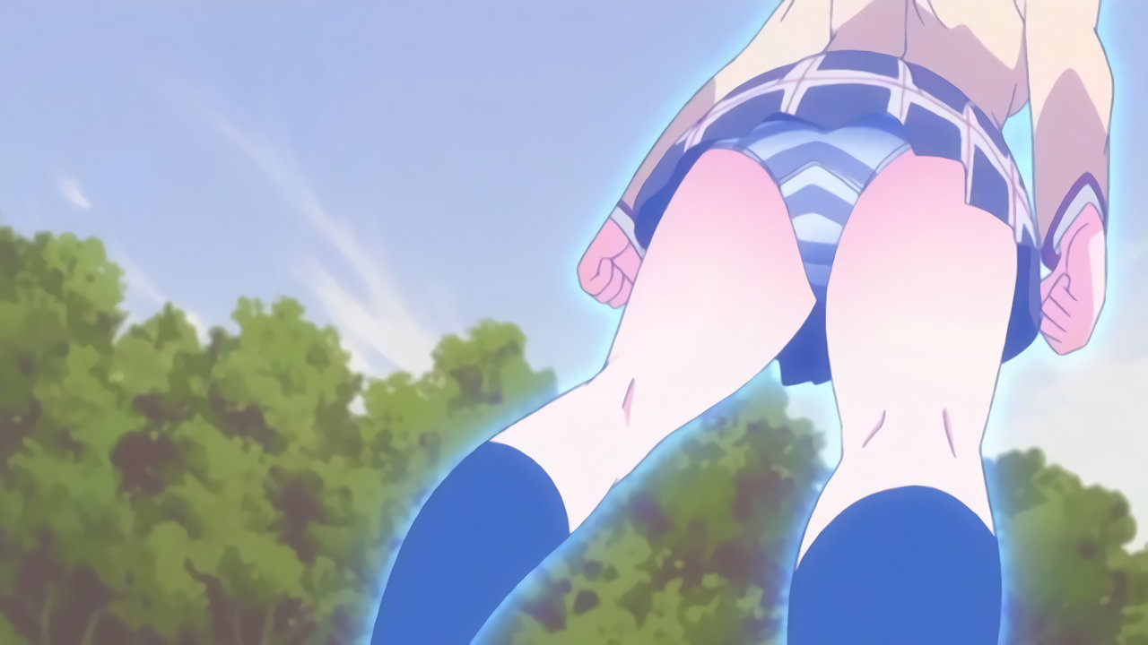木から落ちて、パンツ丸見えの七々尾。