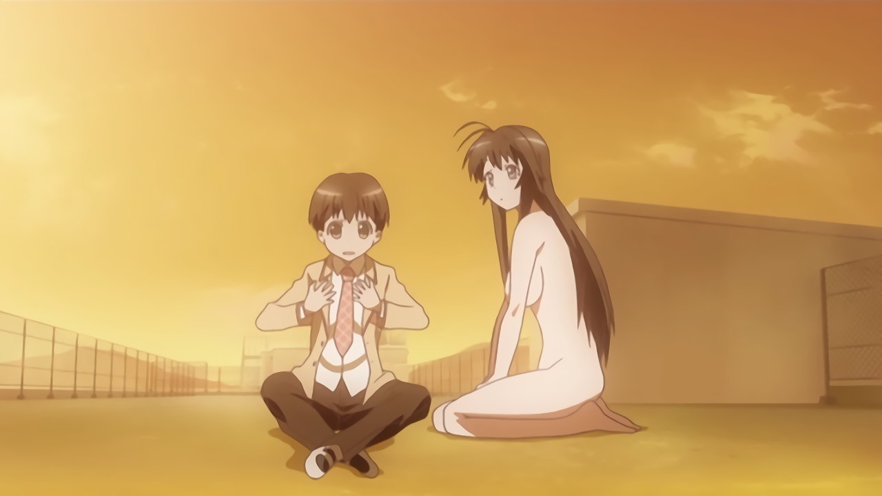 耕太との憑依合体時、全裸化するちずる。乳首が一瞬見える。