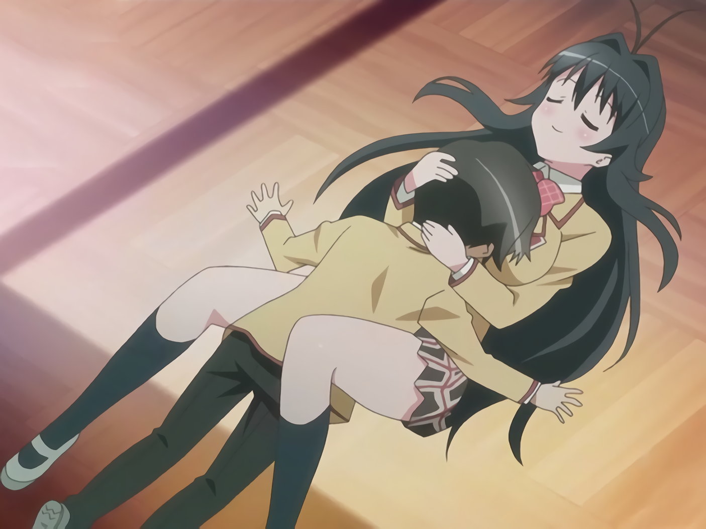 パンチラしながら、耕太に抱きつく、ちずると望。