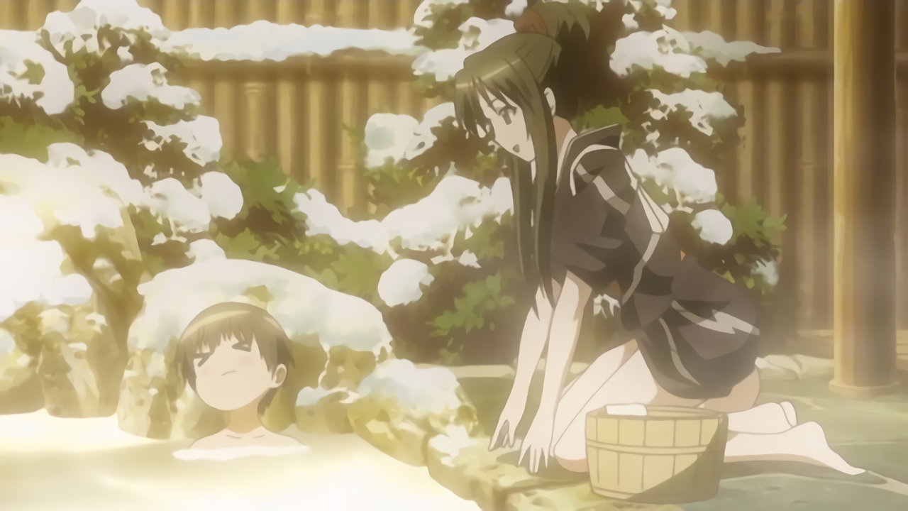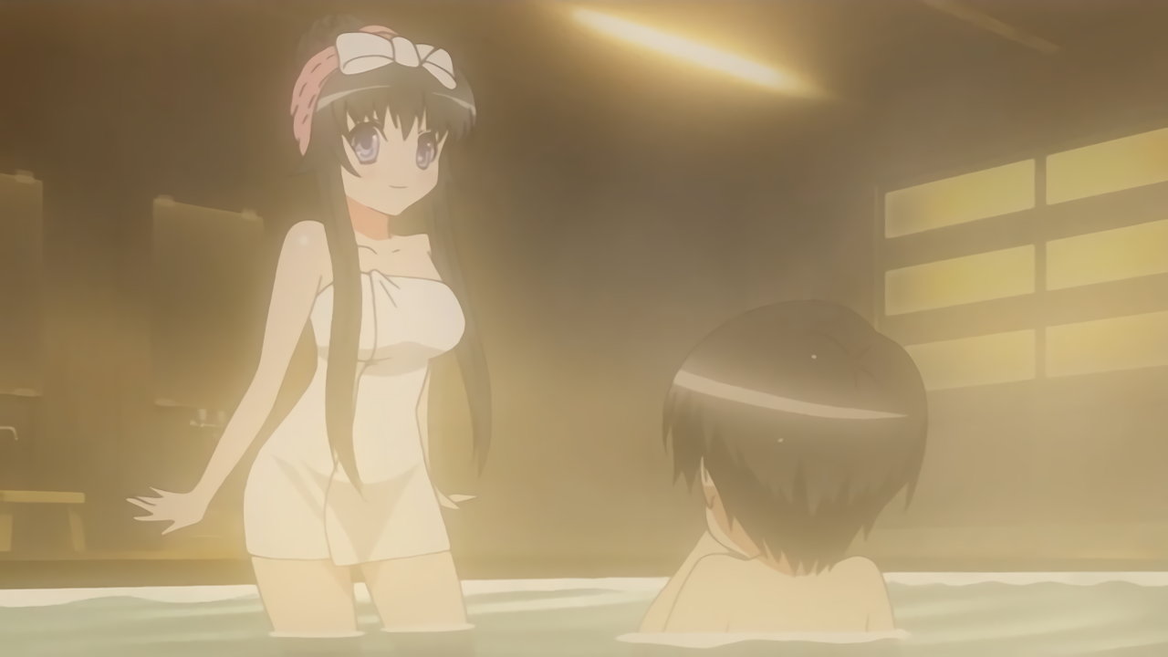 入浴中の耕太。すると、裸バスタオル姿のちずるが浴場に現れる。