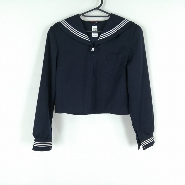 1円 セーラー服 上着 冬物 白3本線 女子 学生服 高知商業高校 紺 制服 中古 ランクC EY8856