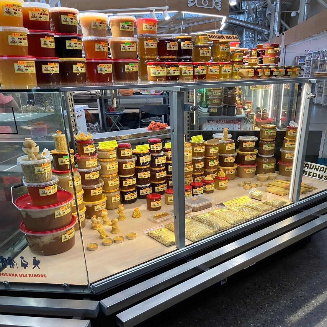 例えば、街中のお土産屋さんでは、ラトビアの伝統的な文様を編み込んだ手編みミトンやラトビアの自然の恵みであるはちみつ、長い冬を過ごすための蜜蝋のろうそくなどをたくさん見かけました。マーケットには地元の新鮮なフルーツやお野菜がたくさん積まれています。