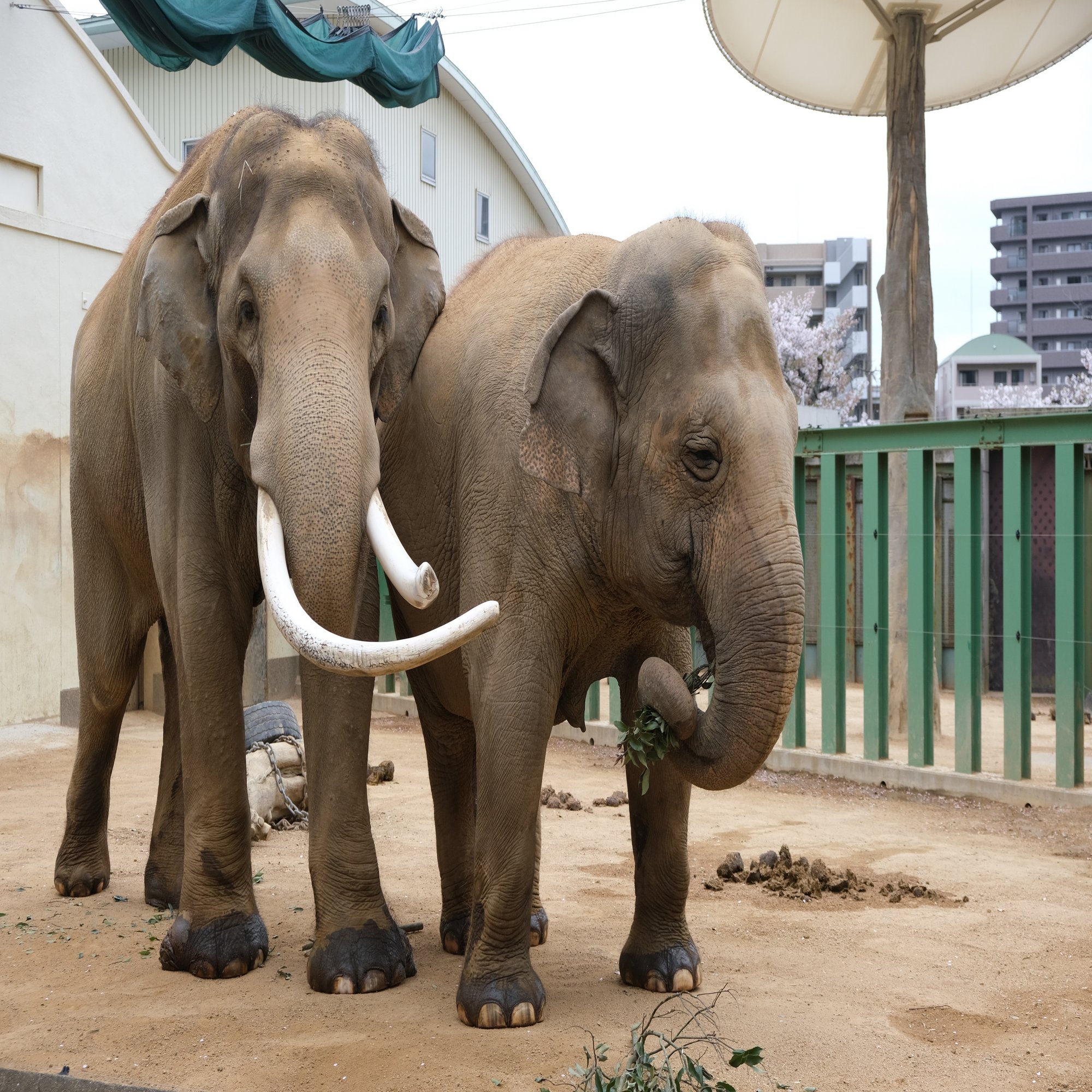 王子動物園には2頭のゾウがいます。32歳のオス「マック」と34歳のメス「ズゼ」です。ともにアジアゾウで、とても仲良しです。