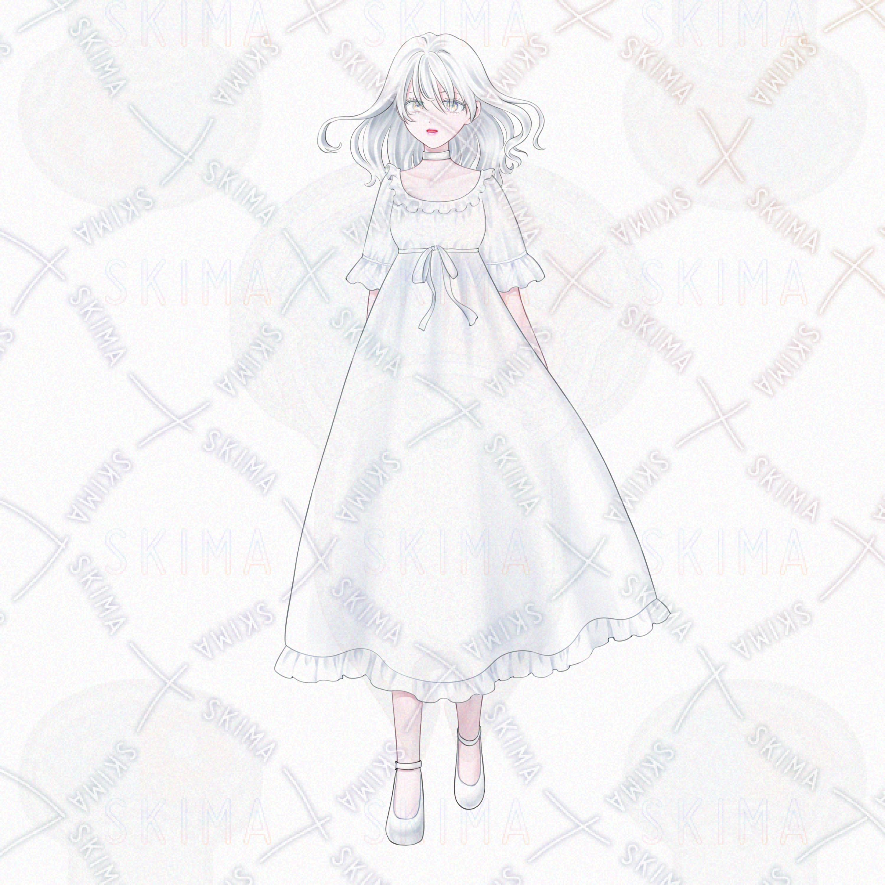 色素の薄い白い少女の全身立ち絵です。