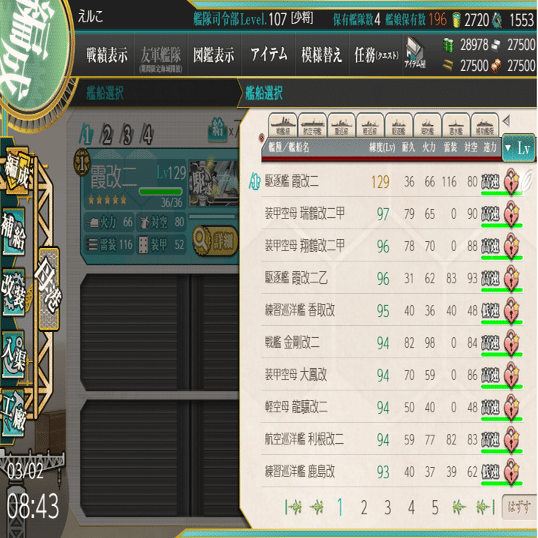 学生の時は艦これアクティブユーザーでしたが今はお休み中です(1年に数回演習するくらい)。