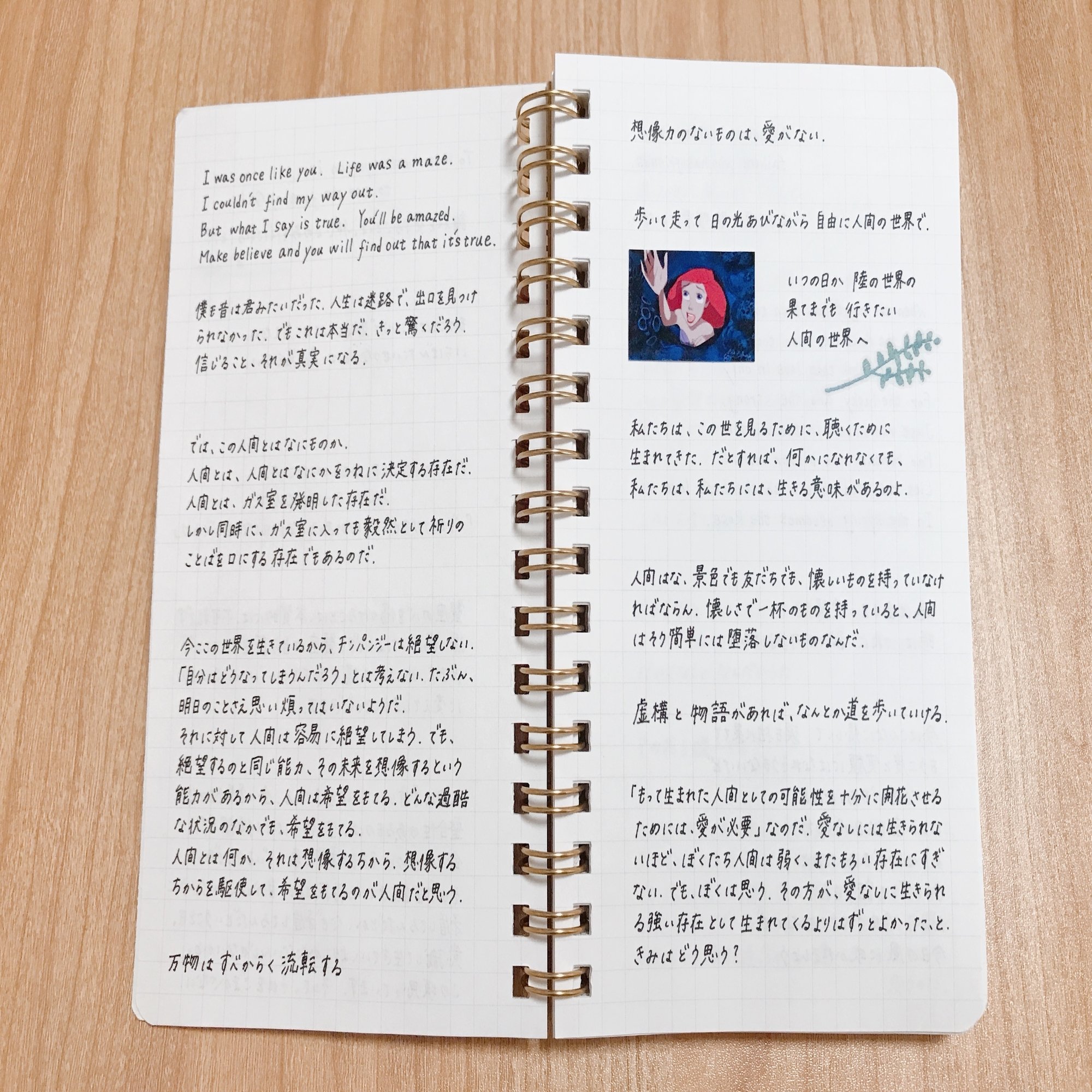 死ぬまでに叶えたい夢のひとつに、自分のつくる物語を本にしたい、というのがあります。そのためのアイディアや、ふと思いついたインスピレーションを書き留めているノートです。今でもときどき童話を書いて公募にだしたりしています。なんだか自分にとってよりパーソナルなノートなので、このノートについてはこの辺でおしまい。