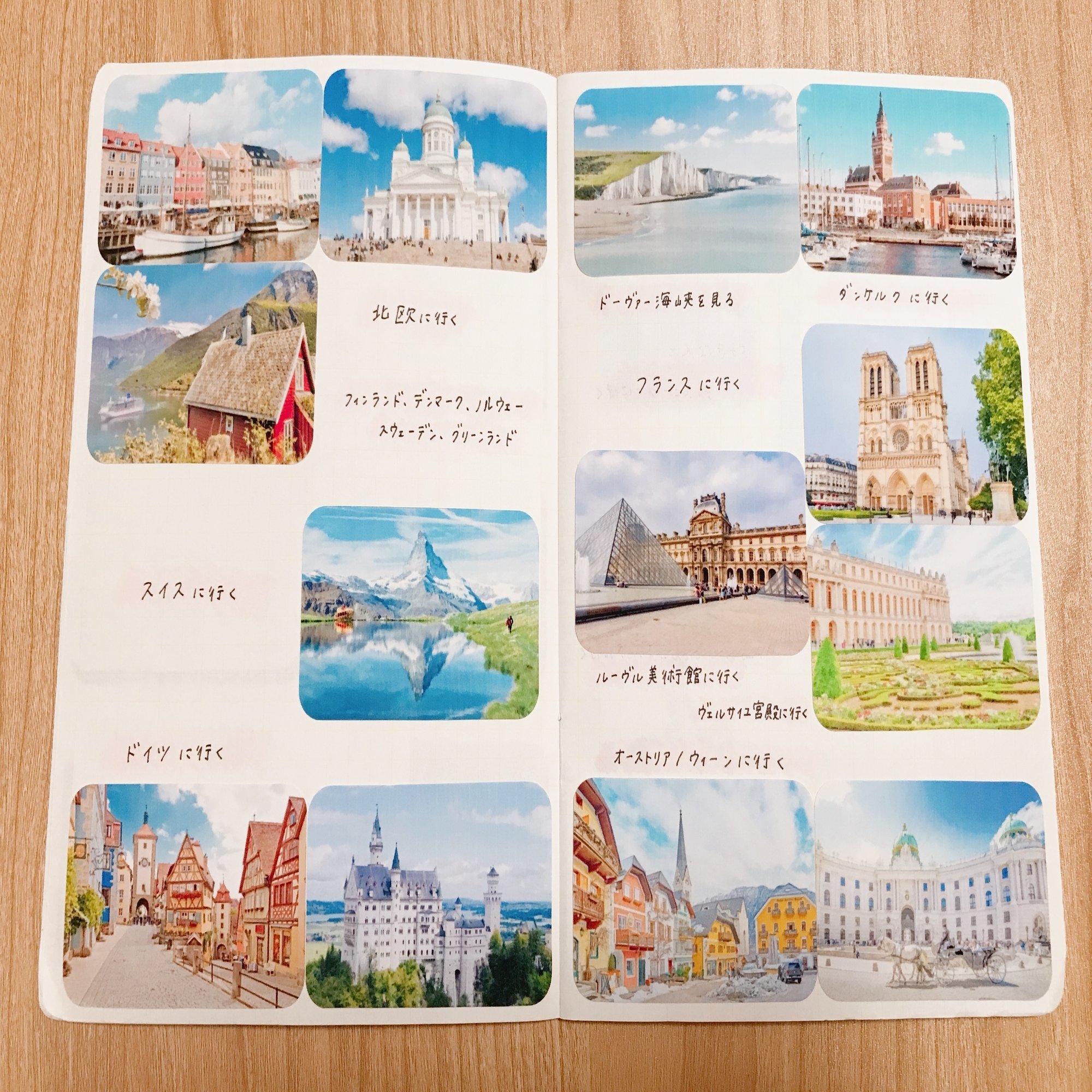生きてるあいだに行ってみたい場所や、してみたいこと、叶えたい夢など、いわゆる Bucket List を視覚的に表現したノートです。